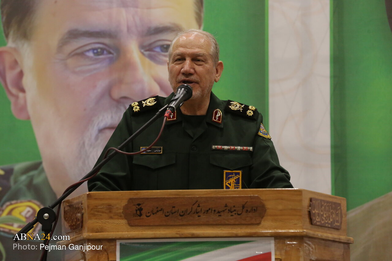 AhlulBayt News Agency (ABNA): The first anniversary ceremony honoring two distinguished commanders of the Resistance Front—Martyr Sayyed Hassan Nasrallah and Martyr Commander Abbas Nilfroshan—was held on Thursday, Mehr 3, 1404 (September 25, 2025) at Golestan-e Shohada in Isfahan. The event was attended by Major General Rahim Safavi, senior advisor to the Commander-in-Chief, and Brigadier General Gholamreza Soleimani, head of the Basij Organization.
