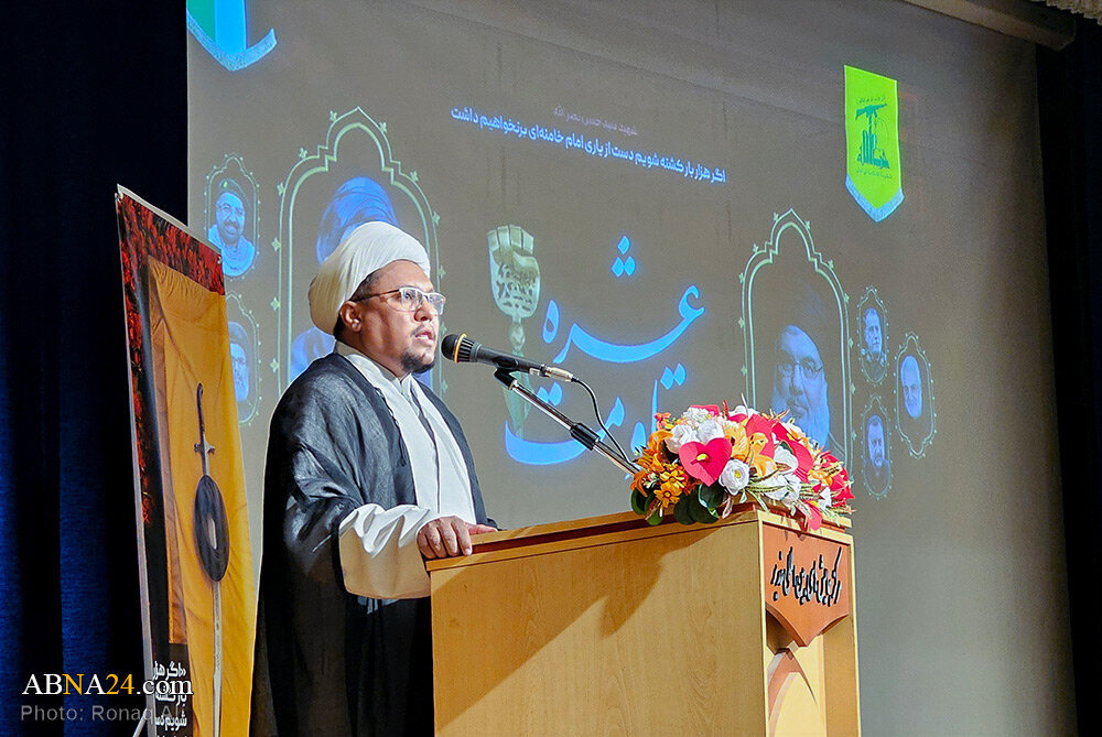 The commemoration ceremony honoring the martyrs of the Axis of Resistance, held on the first anniversary of the martyrdom of Sayyed Hassan Nasrallah, took place at the Imam Khomeini (RA) Hall in the Al-Ghadir Conference Center in Qom. The event was organized by the Al-Sadiq Foundation of Pakistan and attended by Urdu-speaking seminary students.
