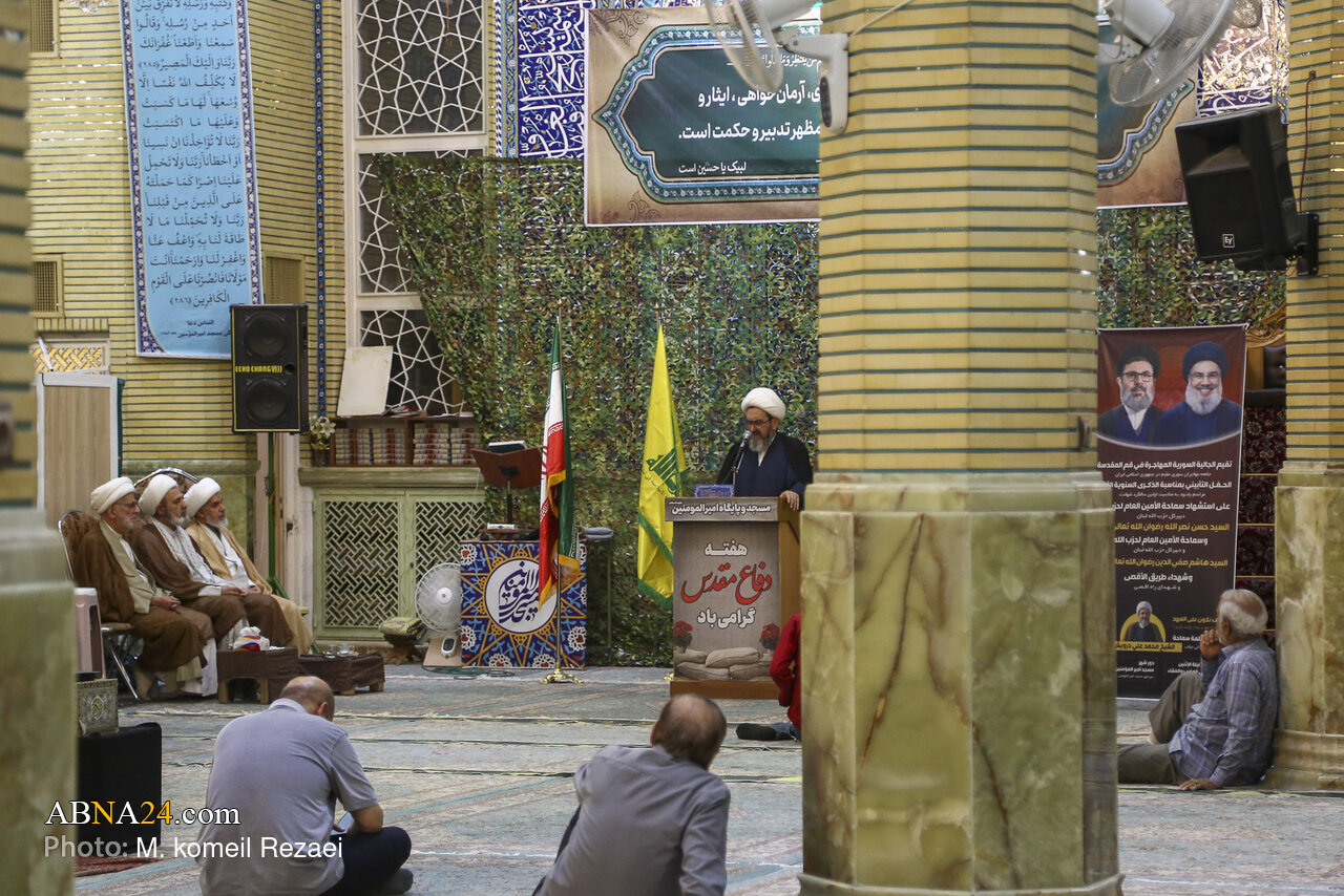The memorial ceremony marking the first anniversary of the martyrdom of Sayyed Hassan Nasrallah and Sayyed Hashem Safi al-Din was held by the Syrian migrant community residing in Qom on Sunday, Mehr 6, 1404 (September 28, 2025), at Amir al-Mu’minin Mosque. The event featured a speech by Sheikh Mohammad Ali Darwish.