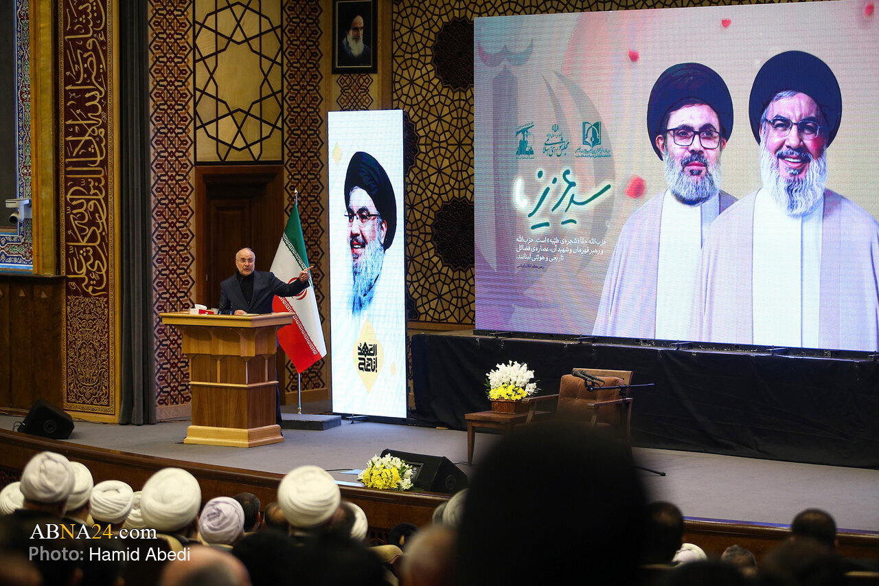 According to the AhlulBayt (a.s) International News Agency – ABNA – a ceremony marking the first anniversary of the martyrdom of prominent resistance fighters, Sayyed Hassan Nasrallah and Sayyed Hashem Safi al-Din, was held on Thursday, 2nd Oct. 2025, at Imam Kazem (a.s) Seminary in Qom. The event featured speeches by Mohammad Baqer Qalibaf, Iranian Parliament Speaker, and Ayatollah Mohsen Araki, member of the Assembly of Experts and the Expediency Discernment Council.