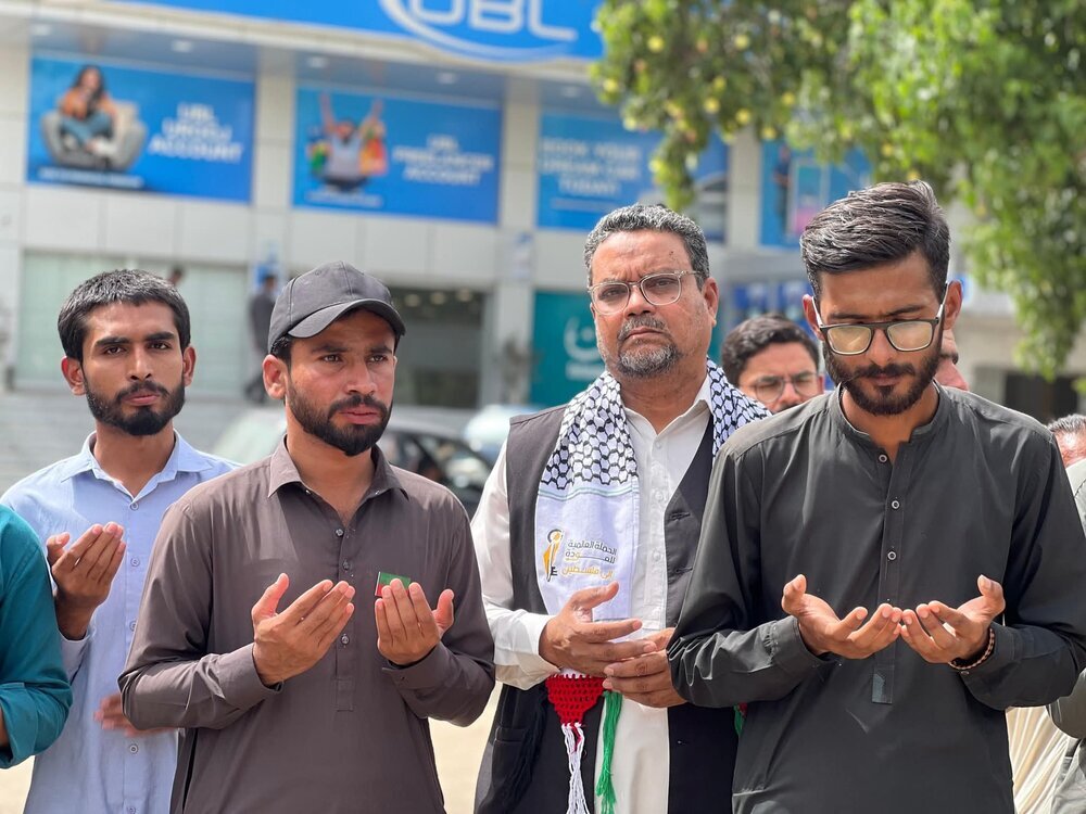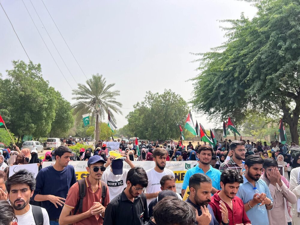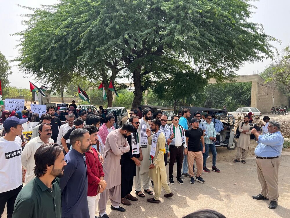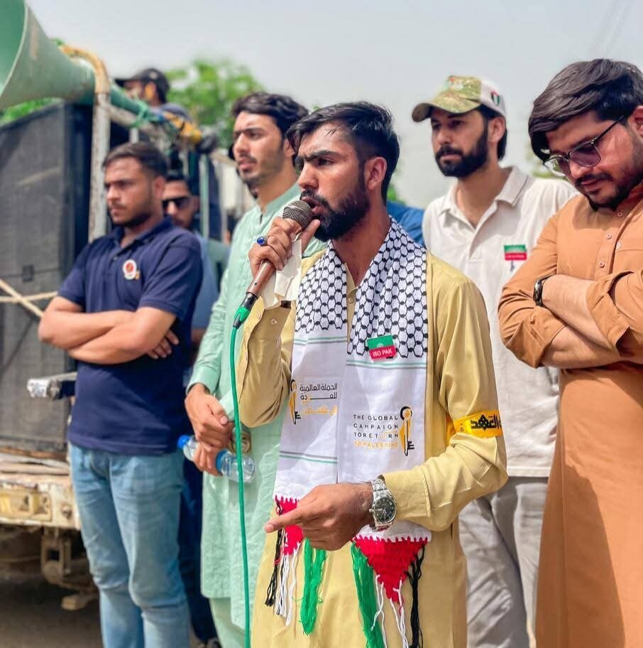 AhlulBayt News Agency: The Students' Alliance of Karachi University organized a protest rally to honor the resilience of the resistance movement Hamas on the occasion of Al-Aqsa Storm Day. The rally also aimed to protest against Israeli aggression and brutality towards the Global Solidarity Flotilla carrying aid to Gaza. The event saw active participation from the courageous students, faculty, and staff of Karachi University.