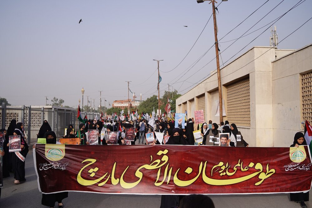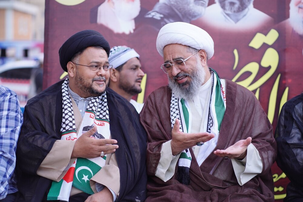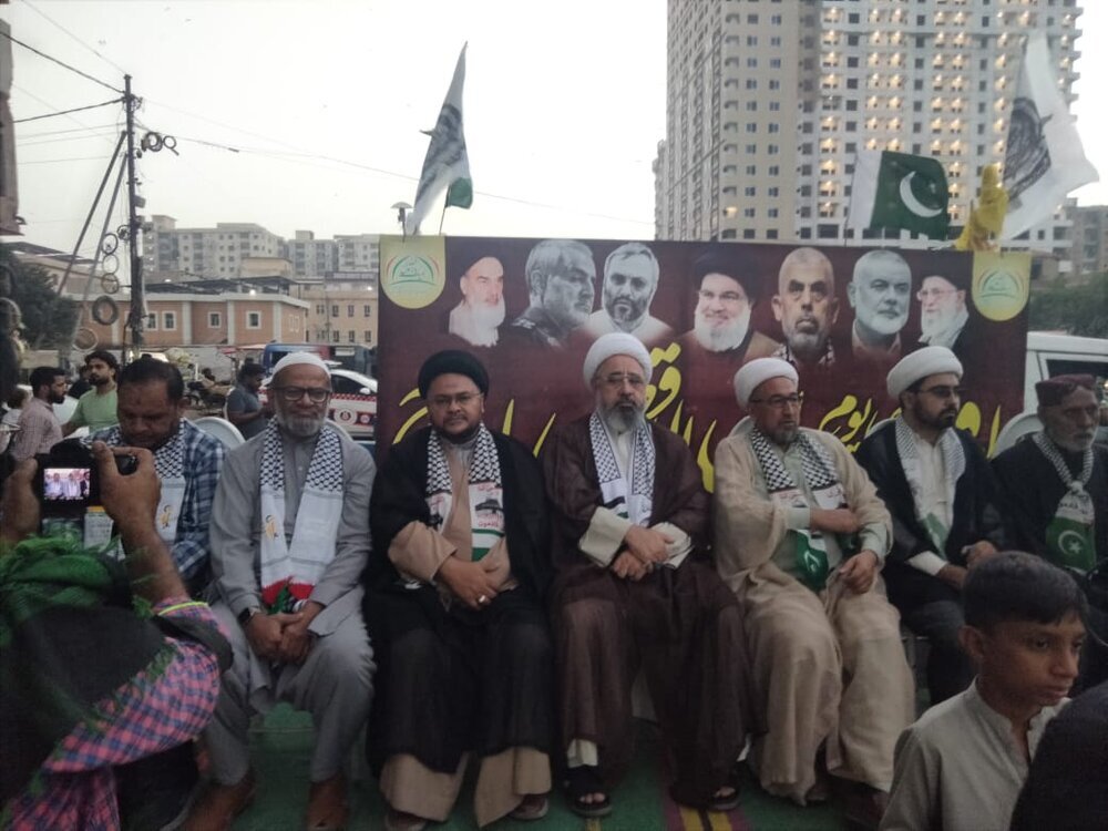 AhlulBayt News Agency: On the occasion of International Al-Aqsa Storm Day, a grand Gaza Solidarity March and gatherings were organized in Karachi under the banner of Tehreek-e-Bidari Ummah-e-Mustafa Pakistan. Thousands of men, women, and children, including religious scholars, participated in the event.