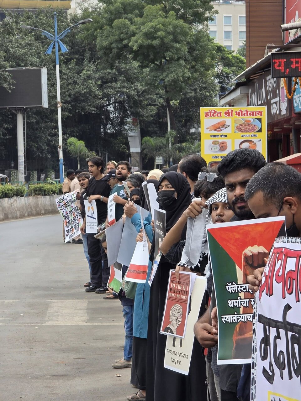 Home News Service Pictures Photos: Hundreds Indian form human chain in Pune railway station demanding an end to genocide, occupation in Palestine 13 October 2025 - 12:54 News ID: 1738079 Source: Abna24 related Photos: Solidarity with Palestine in Vijayawada city, India Jamaat-e-Islami Hind Demands Gaza Reconstruction, Justice, and True Palestinian Sovereignty Hindutva Group Disturb pro-Palestine rally at Delhi University + video Israeli Criminal Regime Releases 96 Palestinian Prisoners in First Phase of Gaza Ceasefire Hamas extends condolences to Qatar over death of diplomats