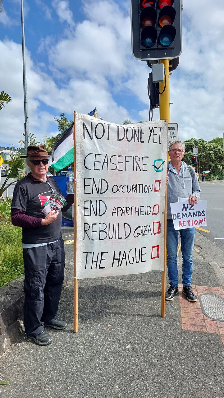 Home News Service Pictures Photos: People of Whangarei, New Zealand stand in Solidarity with Palestine 18 October 2025 - 09:49 News ID: 1739685 Source: Abna24 related Photos: Solidarity rally with Palestine in Britomart of Auckland, New Zealand Police Investigate Online Threat Against New Zealand Mosque Photos: Protest at Rocket Lab HQ in New Zealand collaborating with Israel; Palestine solidarity activists demand accountability Photos: "Boycott Israeli Criminal Regime" protest rally in Riverton, New Zealand Italian port workers block ships bound for Israel West Auckland rally urges boycott of Israeli-linked firms over Gaza genocide Photos: New Plymouth Council Pressed to Follow Other New Zealand Cities on Palestine Solidarity Paper / Sumud Flotilla: Voice of 45 Nations against Israeli Crimes in Gaza New Zealand tourist converts to Islam during trip to Afghanistan Photos: Palestine solidarity rally New Zealand against pro-Israel products and companies Belgium to recognize Palestinian state, announces sanctions on Israel Mass Pro-Palestine protest fills Queen Street in New Zealand’s largest demonstration yet EU Commissioner condemns Israeli expansion in Gaza Al-Madinah School seeks charter status to expand across New Zealand FMs of five countries reject Israel’s plan to occupy Gaza, Security Council to meet today