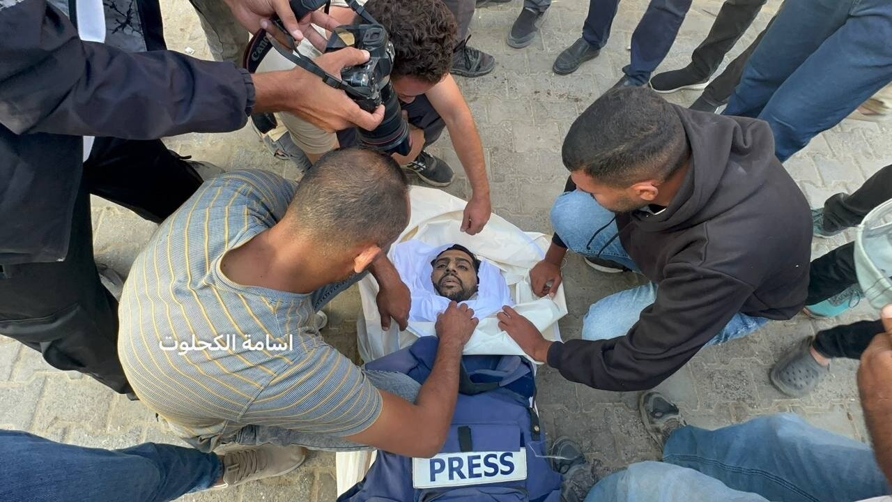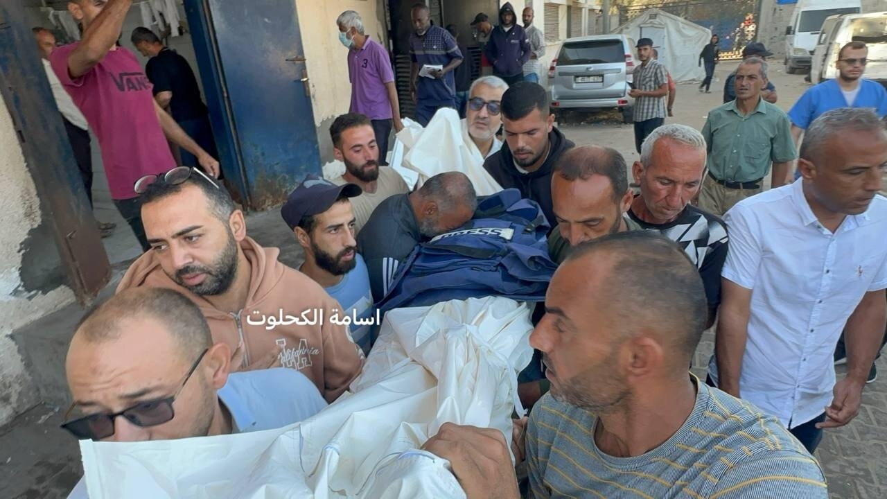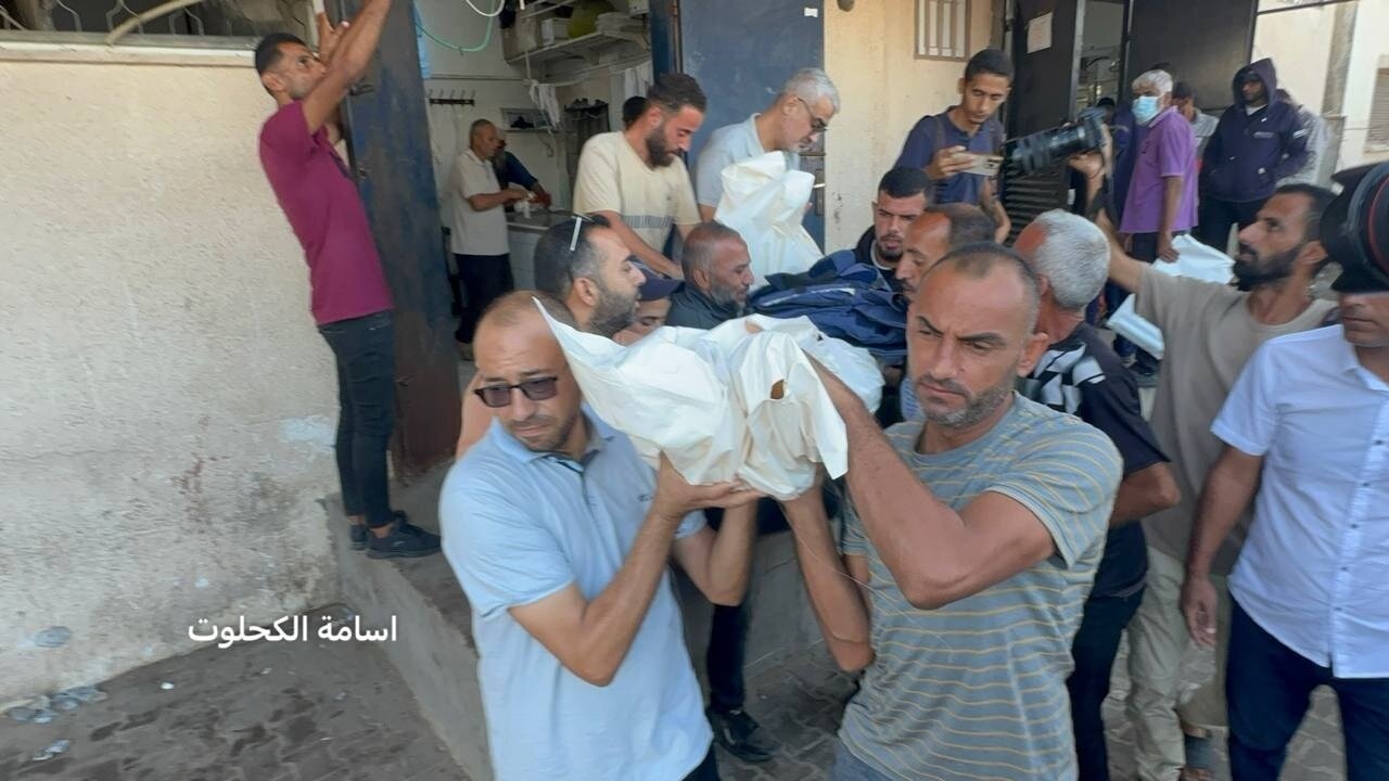Images from the farewell and funeral of the martyrs who were killed yesterday following the Israeli occupation’s targeting of a chalet belonging to a media company in the chalet area, southwest of the town of al-Zawaida, Gaza.