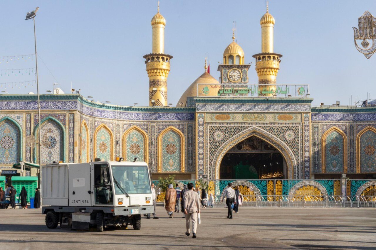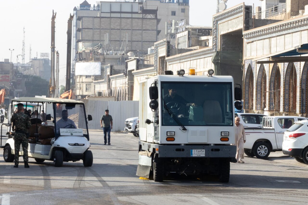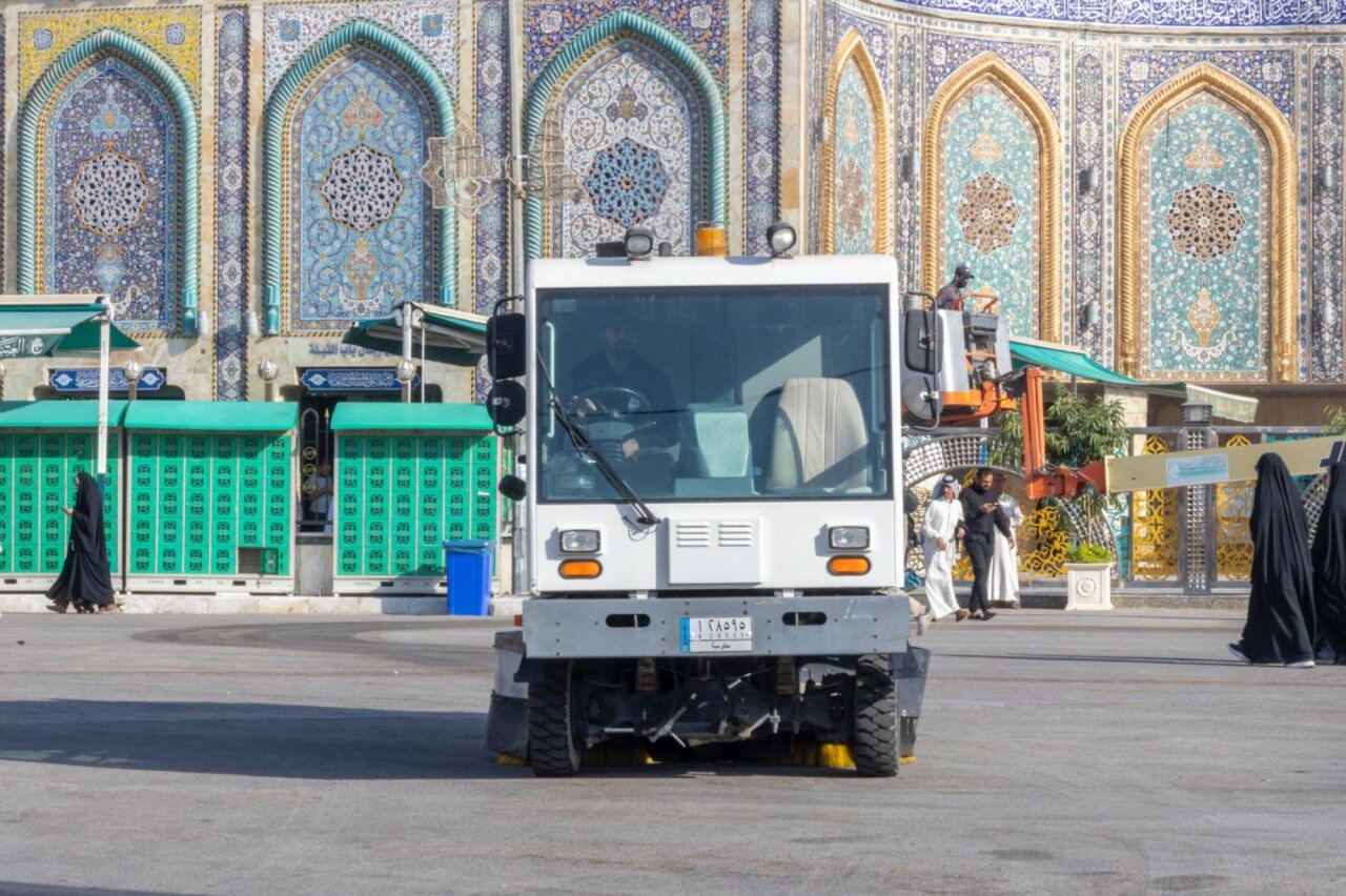 The campaign conducted by the cleaning staff of the department included cleaning the streets and sidewalks surrounding the courtyard of the shrine of Aba al-Fadl al-Abbas (peace be upon him).