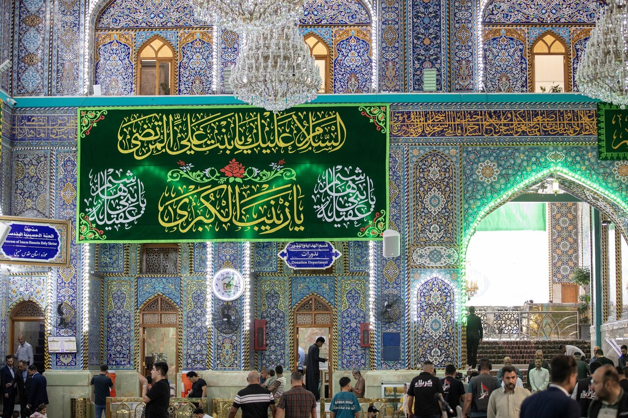 Banners of joy and celebration adorn the shrine of Imam Hussain (peace be upon him) in anticipation of the upcoming anniversary of the auspicious birth of Lady Zaynab (peace be upon her).
