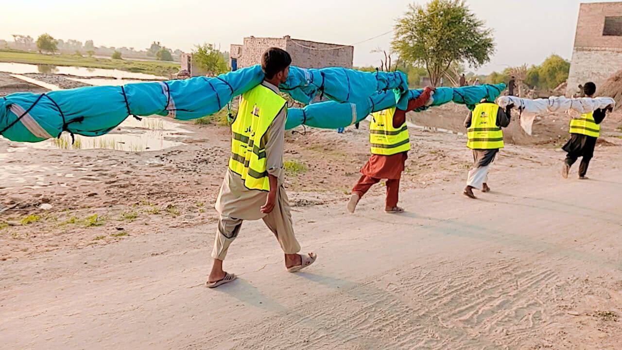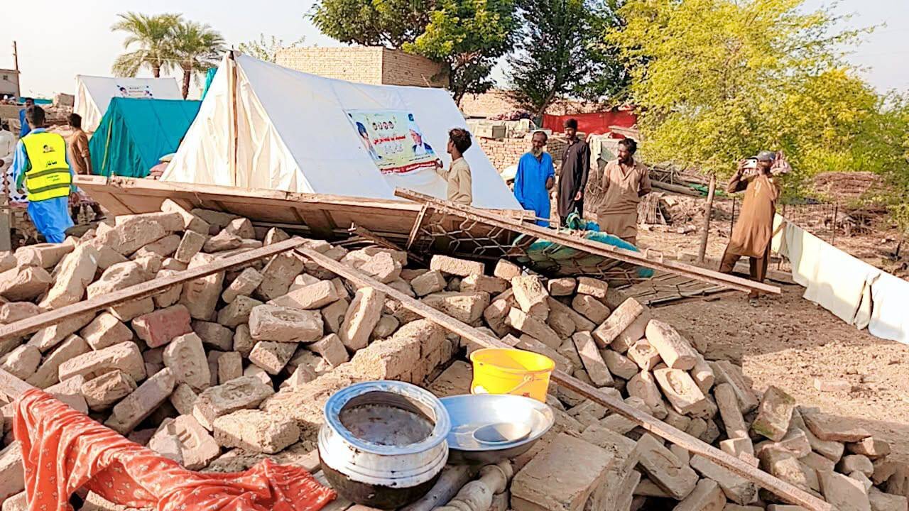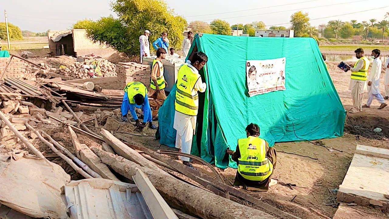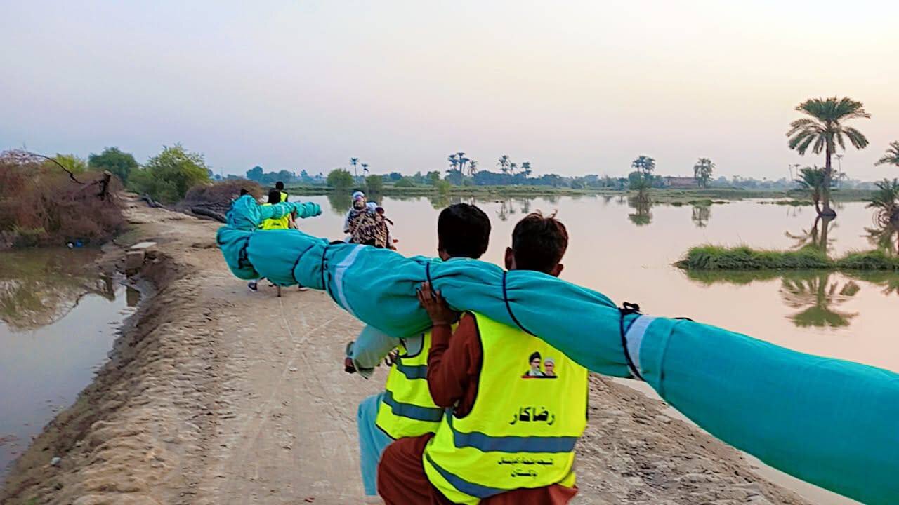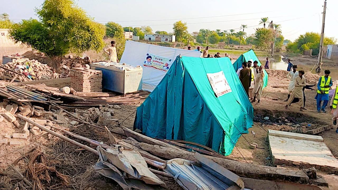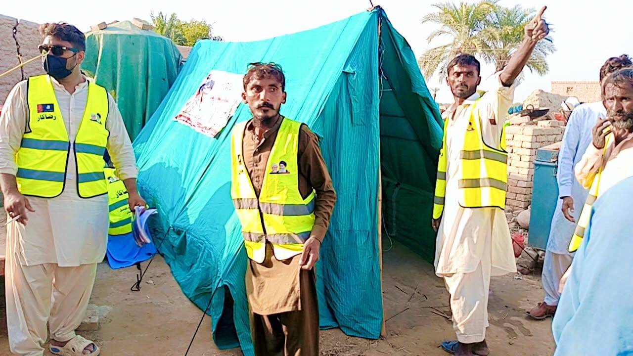 Installation of 140 Tents for Flood Victims in remote areas of in Jalalpur Pirwala Tehsil, Punjab province of Pakistan (Phase III) under the supervision of Allama Syed Sajid Ali Naqvi. Tents installed near their destroyed homes, regardless of sect or school of thought, with full dignity and respect. Their essential belongings were also transferred into the tents. Also in phase I activities: 965 ration packs distributed and 3,600 mosquito nets provided and in phase II: 76 tents installed for flood victims.