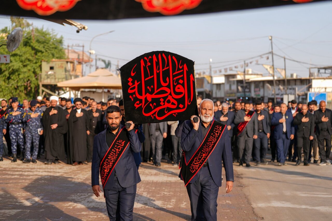 On a morning filled with sorrow and devotion, the General Secretariat of the Holy Al-Askari Shrine commemorated the martyrdom anniversary of Lady Fatimah al-Zahra (peace be upon her) — according to the second narration — by holding a symbolic funeral procession and a solemn mourning ceremony. The voices of the shrine’s servants rose in elegy, and tears flowed from hearts yearning for her pure memory