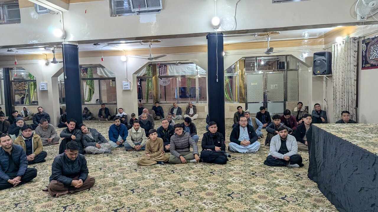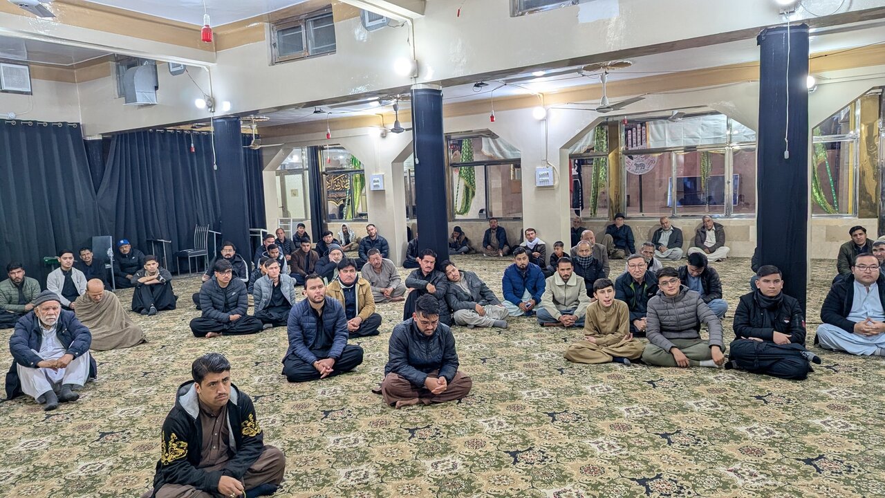 Home News Service Pictures Photos: Martyrdom ceremony of Hazrat Fatima at Hussainiya SyedAbad, Quetta, Pakistan Martyrdom ceremony of Hazrat Fatima at Hussainiya Sadat Hussaini Syedabad, Quetta, Pakistan 6 November 2025 - 12:34 News ID: 1747326 Source: Abna24 related Photos: Martyrdom of Sayyida Al-Zahra at Ali bin AbiTalib Hussainiya of Hazara Town, Quetta, Pakistan Photos: Lady Fatima martyrdom ceremony at Imambargah Hazara Nachari of Quetta, Pakistan Photos: Martyrdom anniversary of Lady Fatima in Khatam ul Anbiya Mosque in Quetta, Pakistan Photos: Martyrdom of Lady Fatima Al-Zahra at Hussainiya SyedAbad, Quetta, Pakistan Photos: Martyrdom anniversary of Hazrat Fatima at Hussainiya Wali Asr in Hazara Town of Quetta, Pakistan Photos: Martyrdom of Lady Fatima Al-Zahra at Imambargah Hazara Nachari in Quetta, Pakistan Photos: Shia-Sunni scholars attend Unity of Ummah conference 2025; On "The Ummah’s trial in field of Gaza" in Quetta, Pakistan Photos: Martyrdom ceremony of Hazrat Fatima at Hussainiya Sadat Hussaini of Quetta, Pakistan