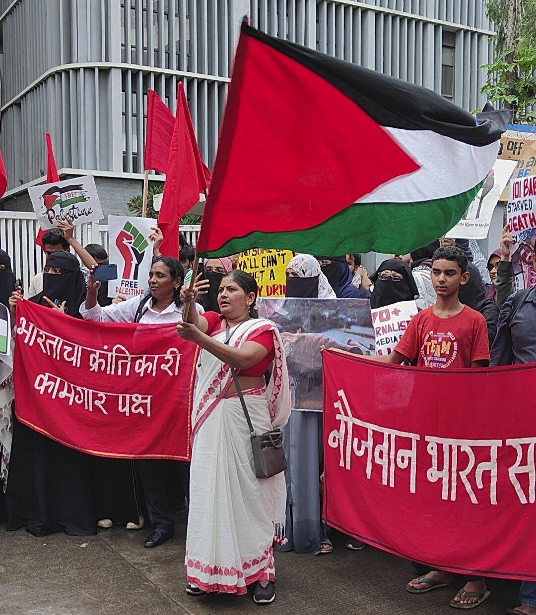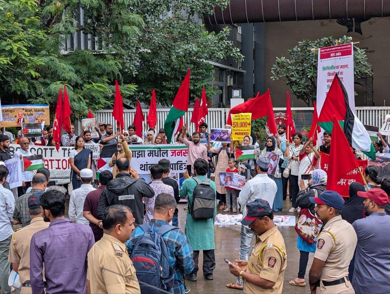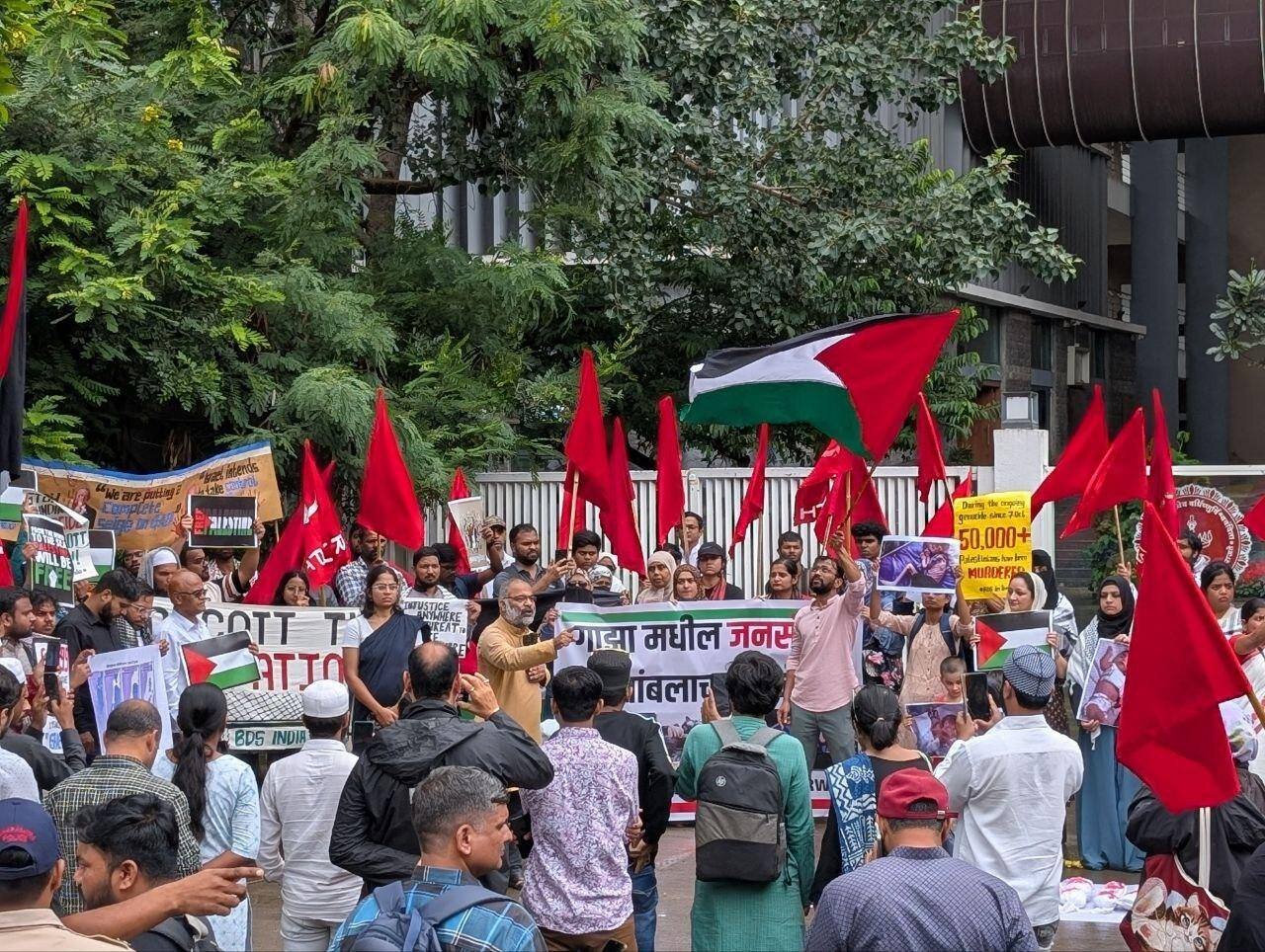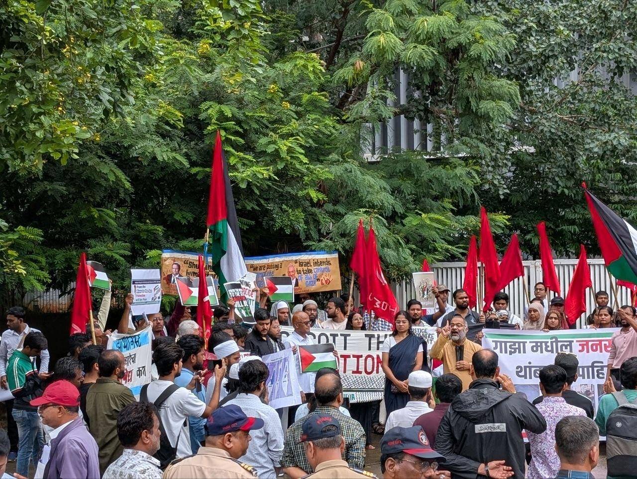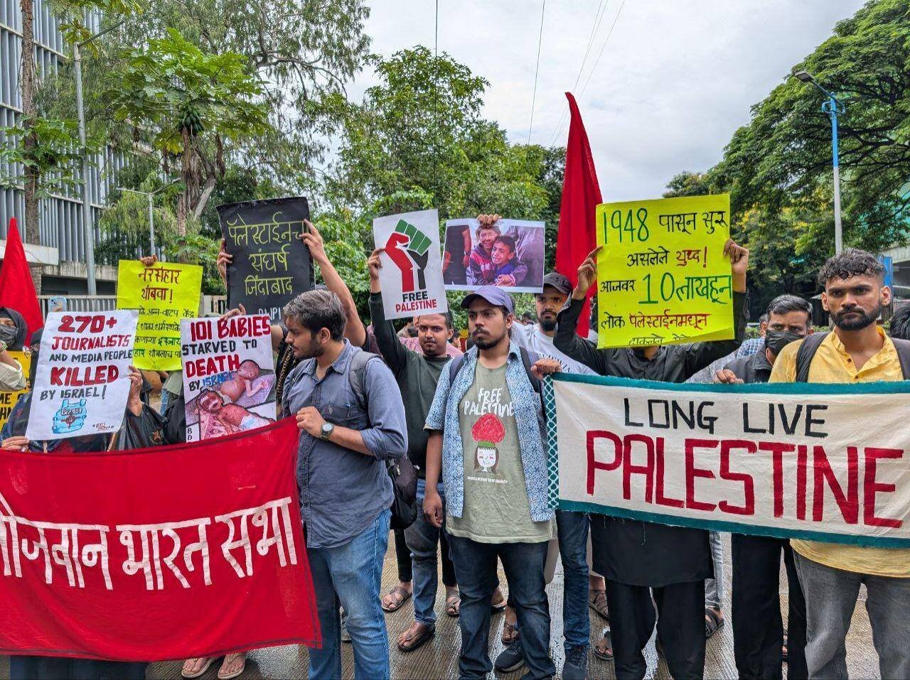 AhlulBayt News Agency: Various left, progressive organizations from Pune organized a protest at the Collector Office today. The organizations and movements included Revolutionary Workers' Party of India (RWPI), BDS India, Naujawan Bharat Sabha (NBS), Disha Students’ Organization, Indian People in Solidarity with Palestine (IPSP), along with many justice loving citizens, youth and students.