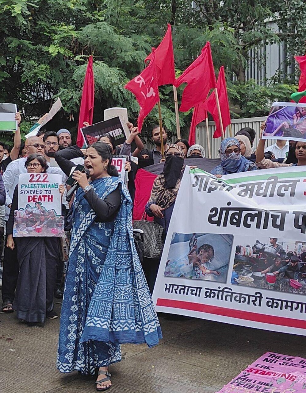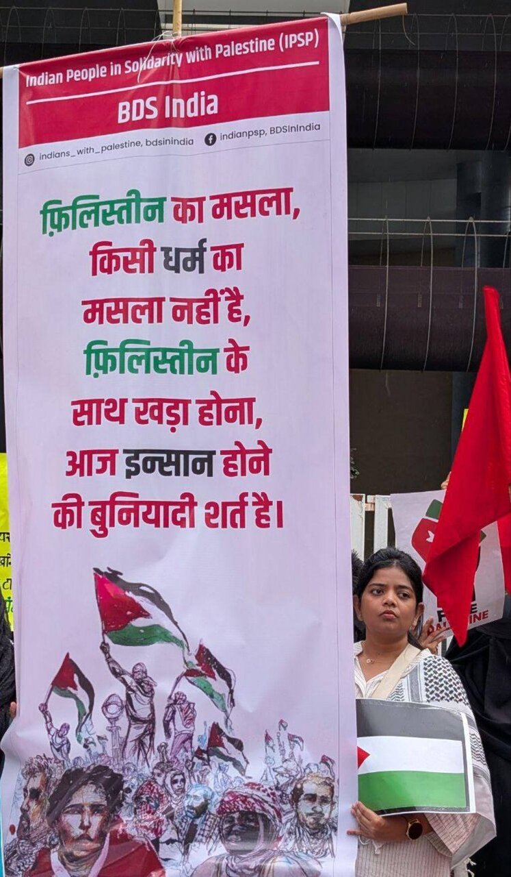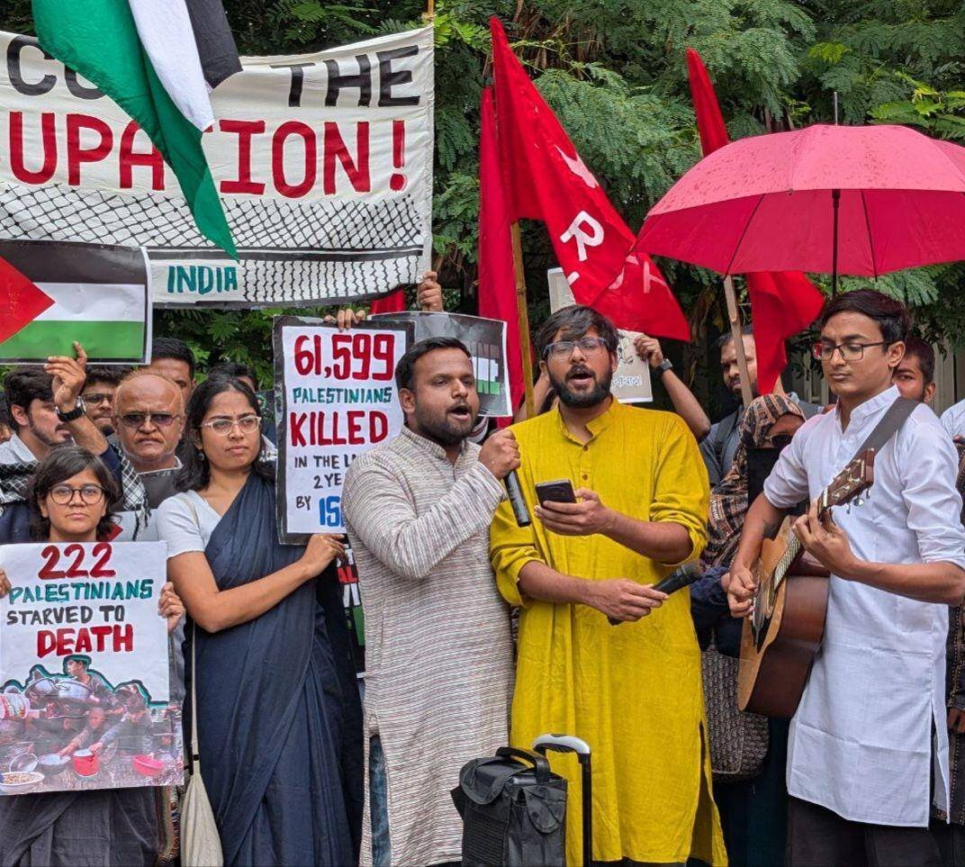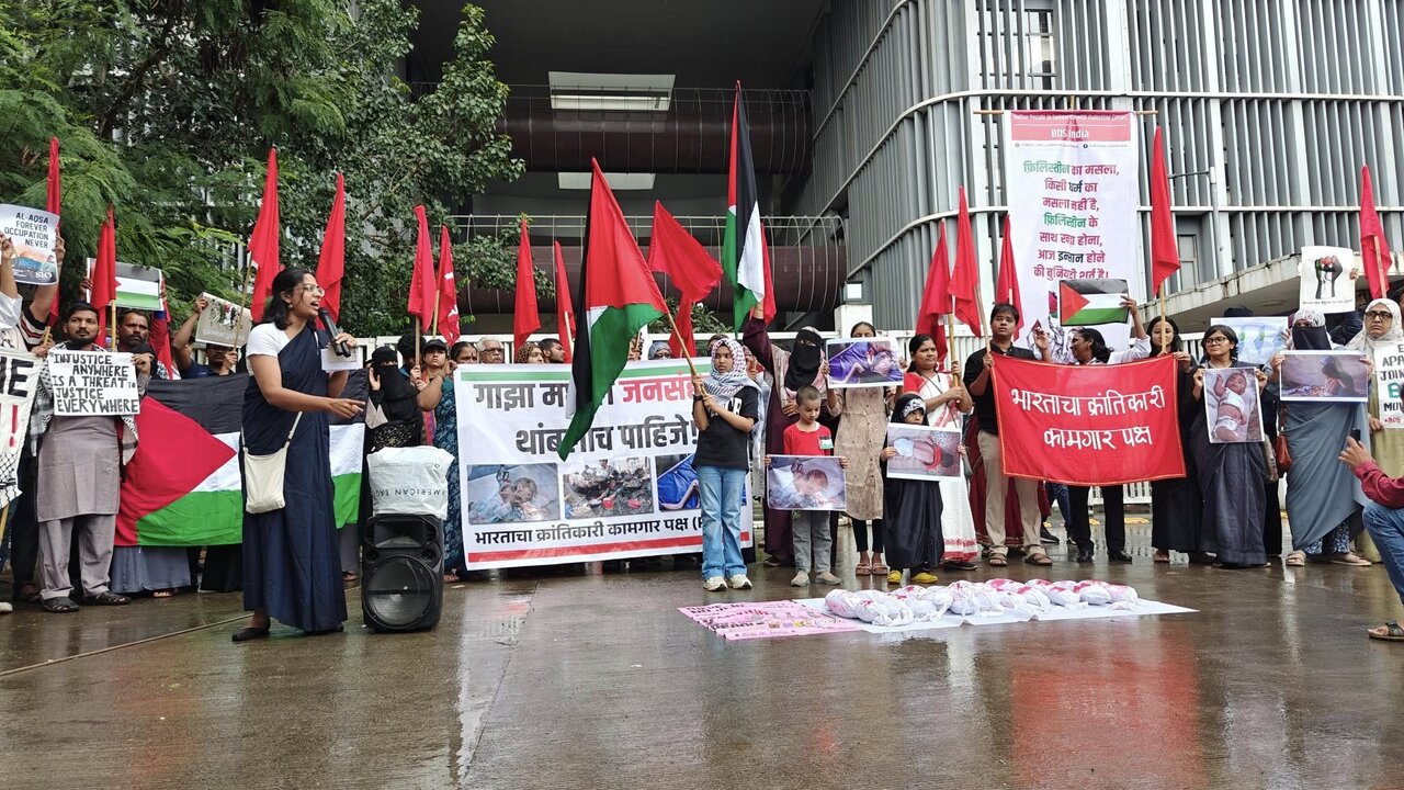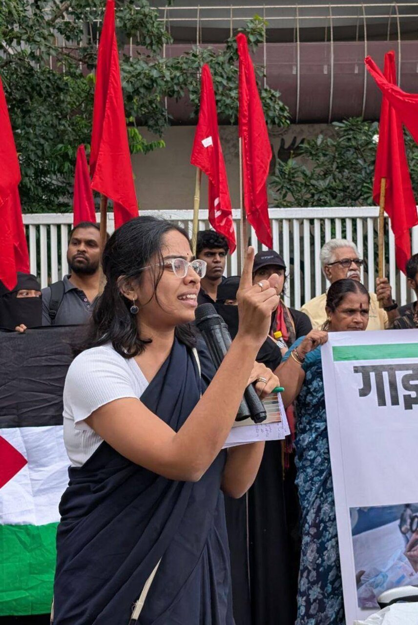 AhlulBayt News Agency: Various left, progressive organizations from Pune organized a protest at the Collector Office today. The organizations and movements included Revolutionary Workers' Party of India (RWPI), BDS India, Naujawan Bharat Sabha (NBS), Disha Students’ Organization, Indian People in Solidarity with Palestine (IPSP), along with many justice loving citizens, youth and students.