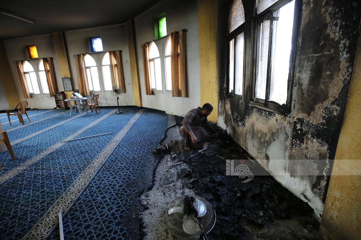 A horde of extremist Jewish settlers set fire to the Hajjah Hamida Mosque in the town of Deir Istiya, northwest of Salfit in the occupied West Bank, at dawn Thursday. But in spite of this criminal acts the worshipers returned to the Hajjah Hamida Mosque, and performed the Friday prayer, one day after it was burned by settler gangs.