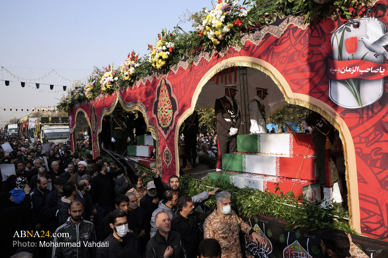 AhlulBayt News Agency: The funeral ceremony for the pure bodies of 100 unidentified martyrs from the Sacred Defense era was held on Monday (November 24, 2025), in Tehran. The event coincided with the anniversary of the martyrdom of Hazrat Fatimah al-Zahra (s.a.) and was attended by various groups of people, officials, and the esteemed families of martyrs.