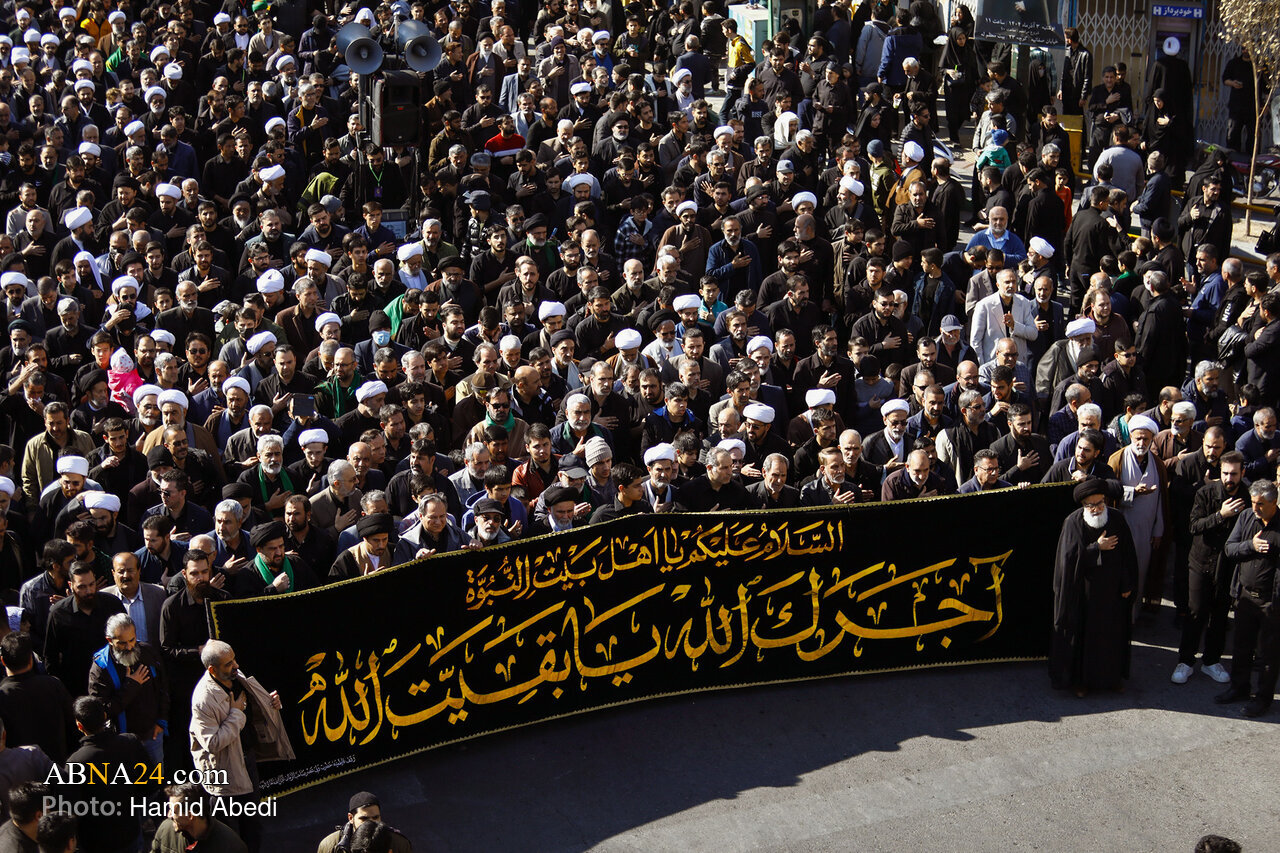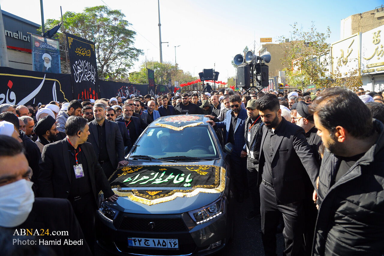 AhlulBayt News Agency: Coinciding with the anniversary of Hazrat Fatimah Zahra’s (s.a.) martyrdom, the annual mourning procession was held on Monday (November 24, 2025), from the residence of Grand Ayatollah Hossein Vahid Khorasani to the Holy Shrine of Hazrat Masoumeh (s.a.).