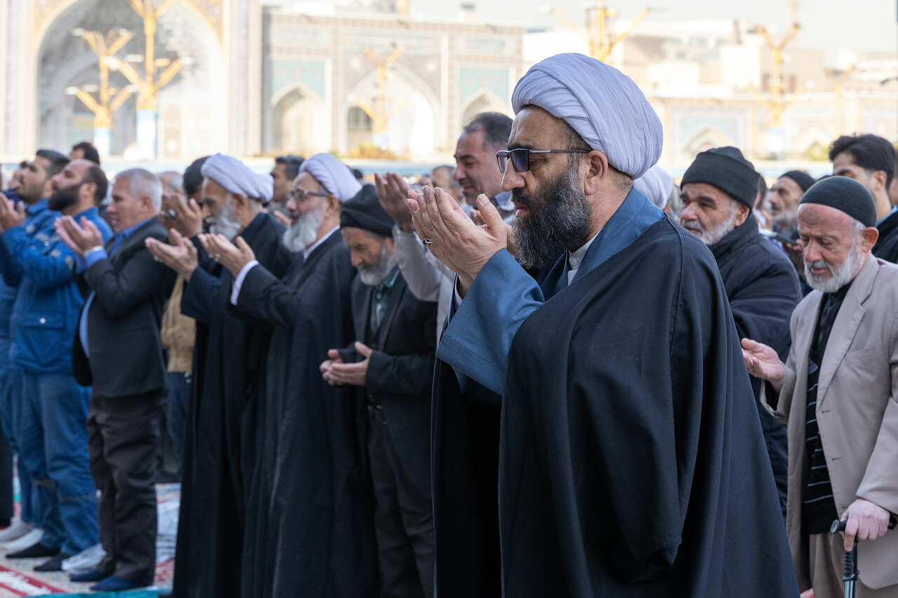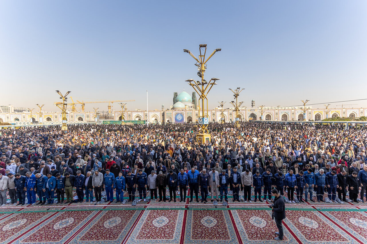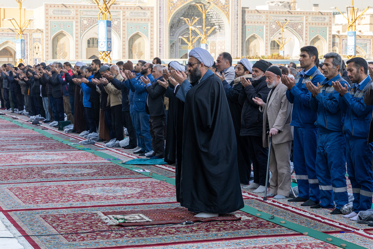 The ceremony of the rain prayer (Salat al-Istisqa) was led by Ayatollah Mahdi Zamani-Fard, a member of the Supreme Council of the Seminary of Khorasan, on Thursday, November 27, 2025. The prayer was performed in the Payambar Azam (PBUH) courtyard of the holy shrine of Imam Reza (a.s.) in Mashhad.
