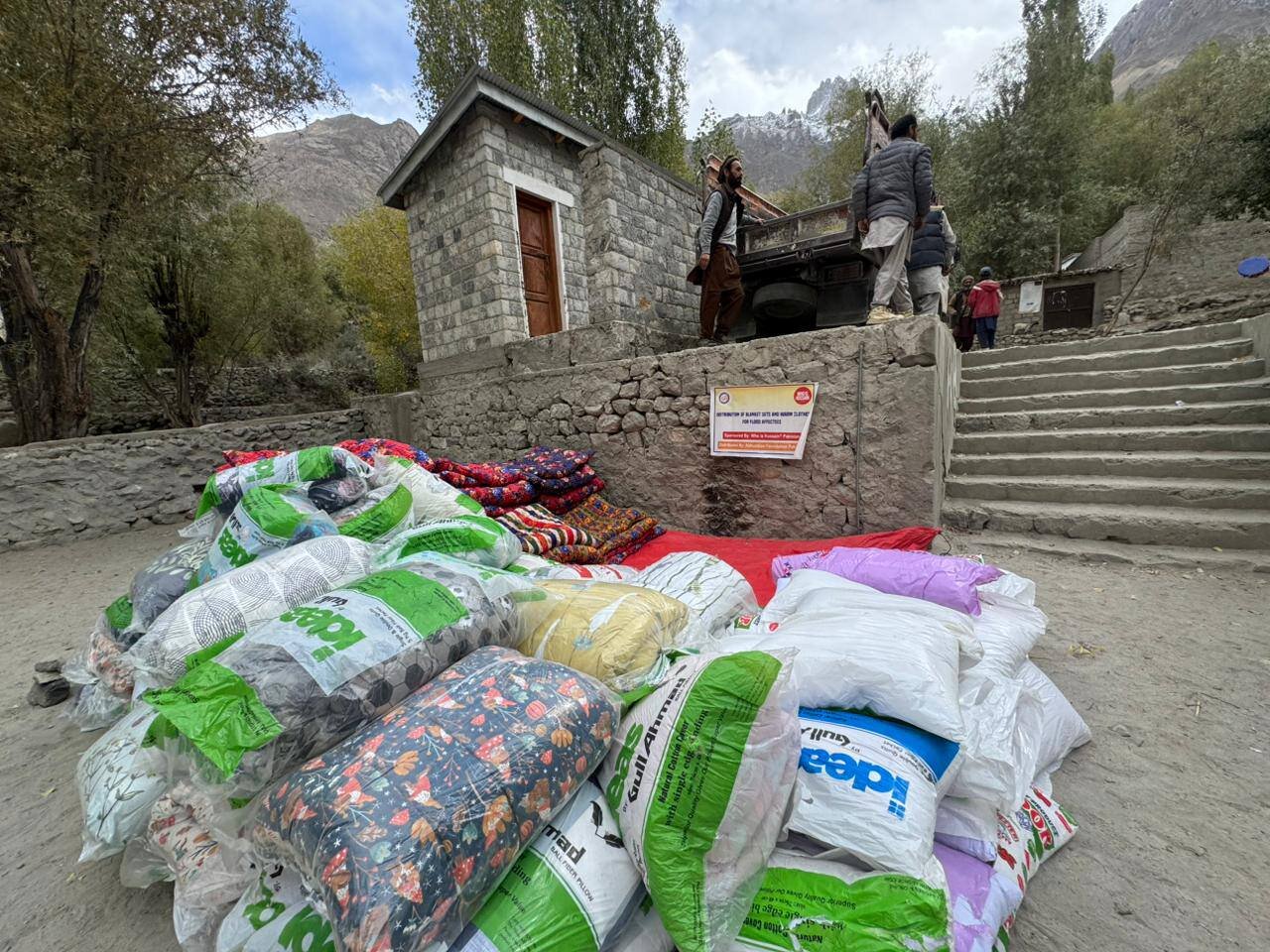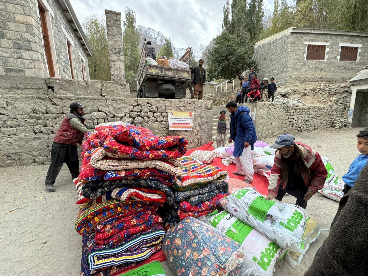 In the flood‑affected valleys of Khaplu and Shigar in Baltistan of Pakistan, humanitarian teams provided essential winter relief to vulnerable families. Volunteers of Who is Hussain Pakistan distributed 1000 jackets and 53 blanket sets (each including a blanket, mattress, and pillow). These efforts aimed to bring warmth, dignity, and hope to communities facing harsh weather conditions, inspired by the legacy of Hussain Ibn Ali as a symbol of compassion and humanity.