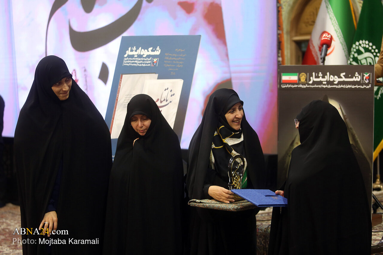 AhlulBayt News Agency: On Thursday, December 4, 2025, the national ceremony “Splendor of Sacrifice” was held at the Imam Khomeini Hall of the holy shrine of Hazrat Fatima Masoumeh (s.a.) in Qom. The event, coinciding with the anniversary of the demise of Hazrat Umm al-Banin (s.a.), honored the mothers and wives of martyrs and was attended by families of martyrs.