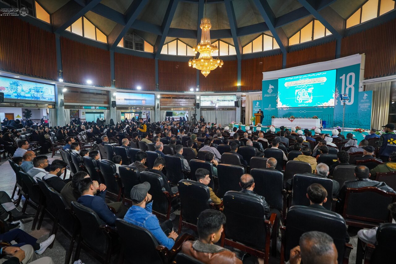 The Alawi Holy Shrine delegation, led by Ali Mahbuba, joined the annual Fadak Sermon memorization competition in Basra, organized by the Qamar Bani Hashim Foundation for the eighteenth year, honoring Lady Fatima (peace be upon her).