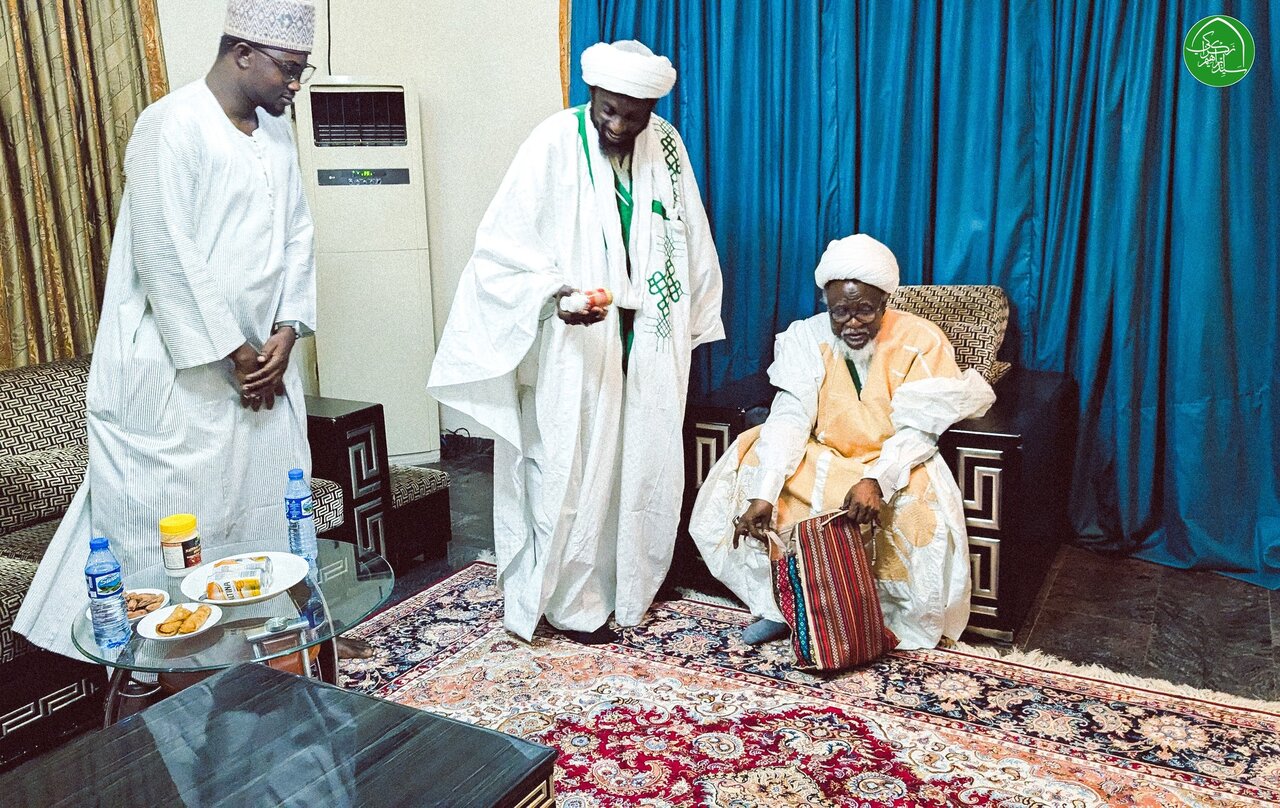 The Acting Ashanti Regional Shia Imam, Sheikh Darul Hikmah, paid a visit to His Eminence Sheikh Ibrahim Yaqub Al-Zakzaky, the Leader of the Islamic Movement of Nigeria, at his residence in Abuja. During the meeting, Sheikh Darul Hikma extended his condolences to Sheikh Zakzaky on the anniversary of the Zaria Massacre, which took place between December 12 and 14, 2015.