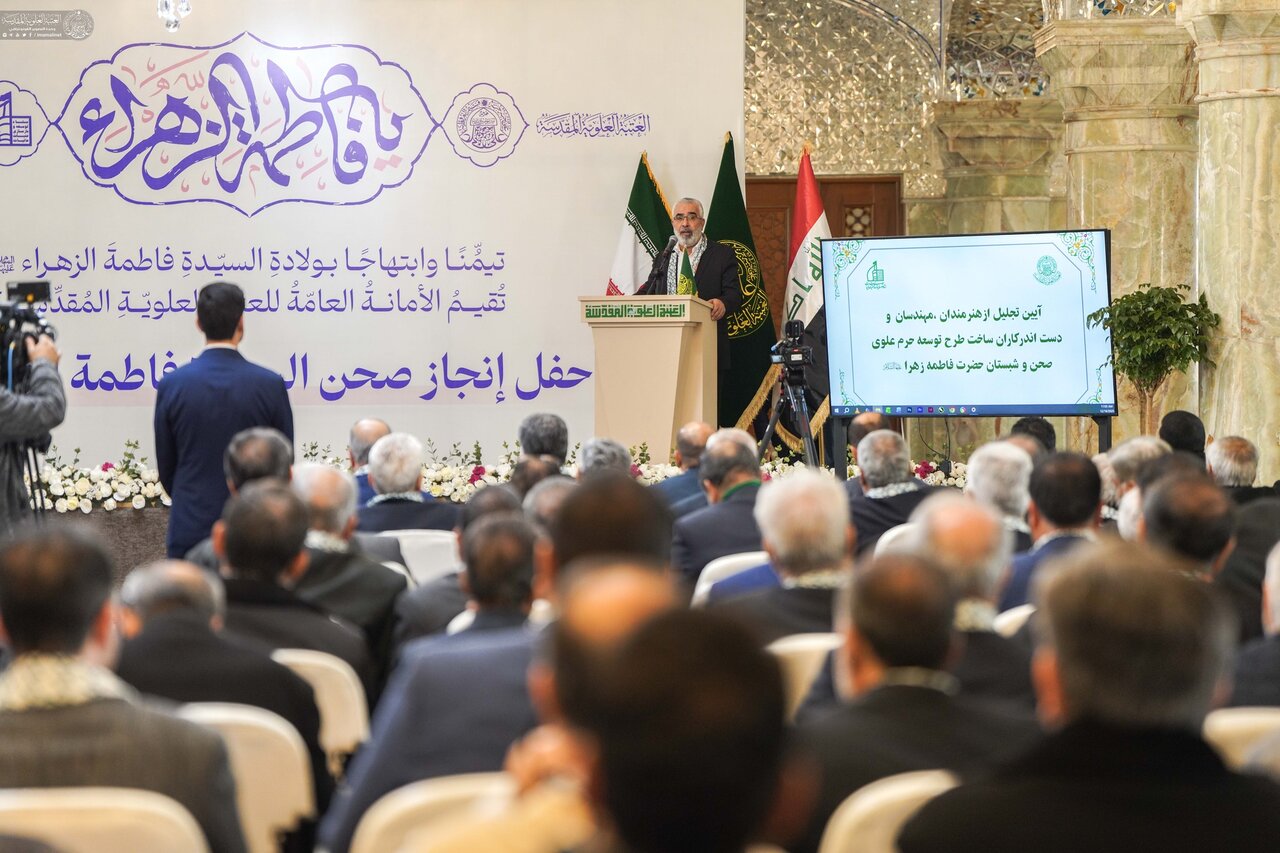 The Alawi Holy Shrine honored the engineering staff and workers of Al-Kawthar Company for the Reconstruction of Holy Shrines, who contributed to the completion of the Lady Fatima al-Zahra (peace be upon her) courtyard project. The celebration was held as part of the Chastity Week activities, attended by the Secretary-General of the Holy Shrine, Sayyid Issa al-Khersan, along with religious, scholarly, diplomatic figures, and officials from the engineering, technical, and planning departments of the shrine.