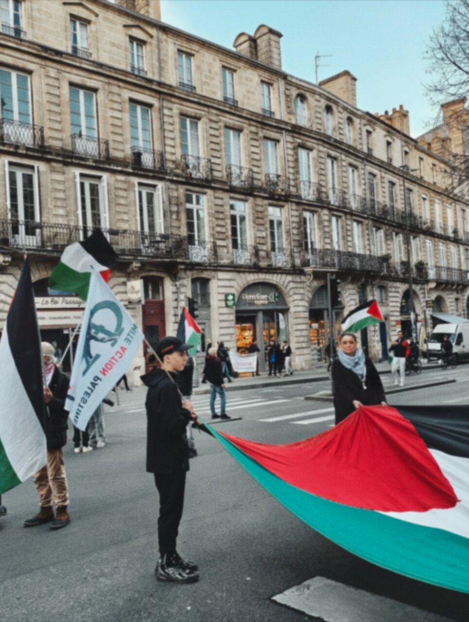 We're not giving up on anything. Let's stay motivated! Palestine will live, Palestine will win! Lebanon will live, Lebanon will win! Yemen will live, Yemen will win! Protest every week, Square de la Victoire, Bordeaux at 15:30