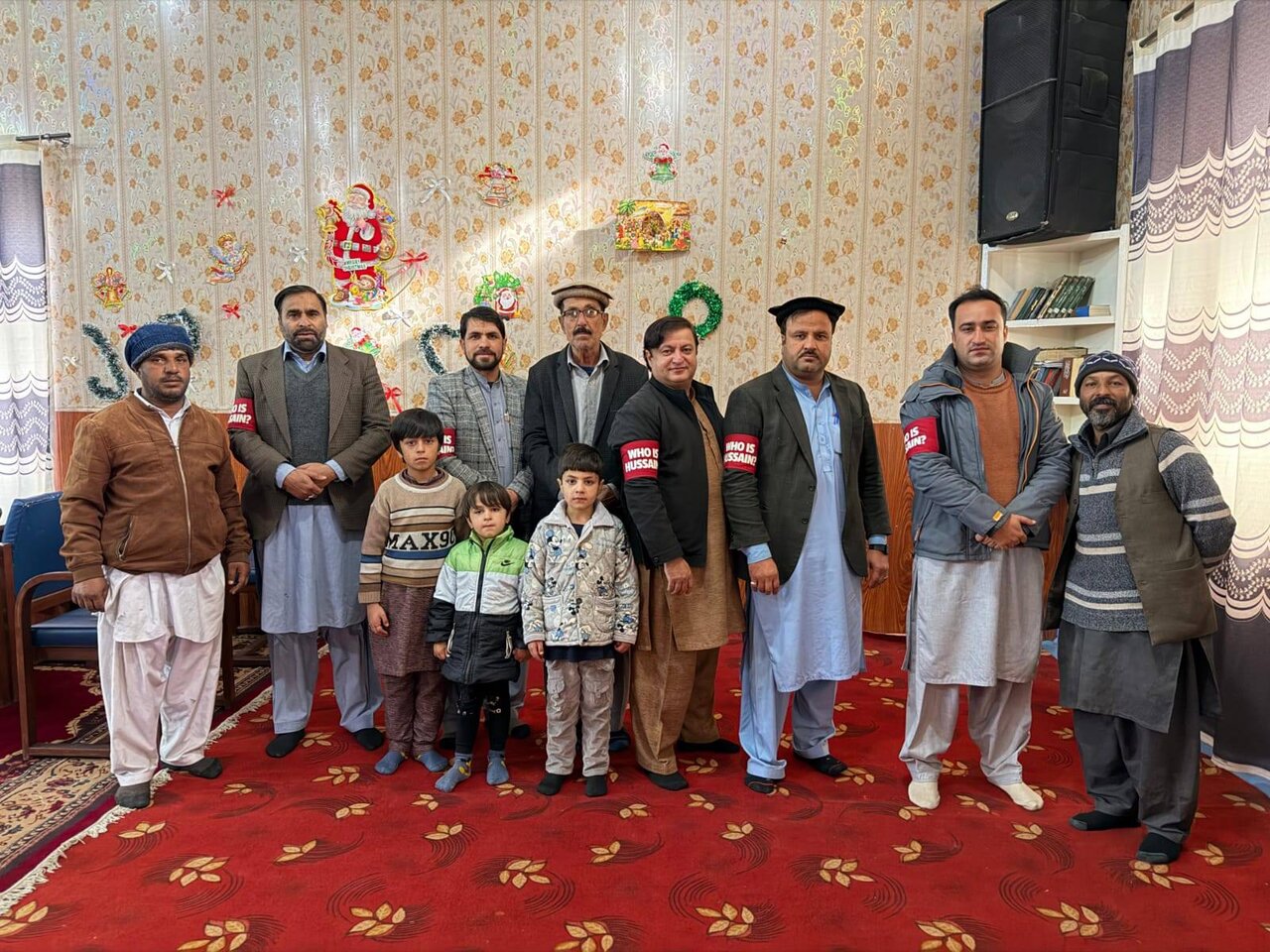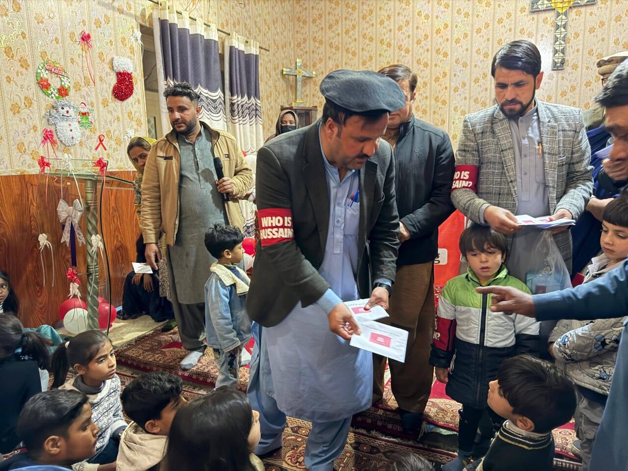 The Who is Hussain Pakistan team visited a local church in Parachinar to celebrate the Christmas, highlighting their commitment to interfaith harmony and compassion. As part of the event, gifts were distributed among 65 children, bringing joy to families during the festive season, while 8 warm shawls were offered to elderly individuals in need, reflecting care for the most vulnerable. The program concluded with a symbolic cake-cutting ceremony and a collective prayer.