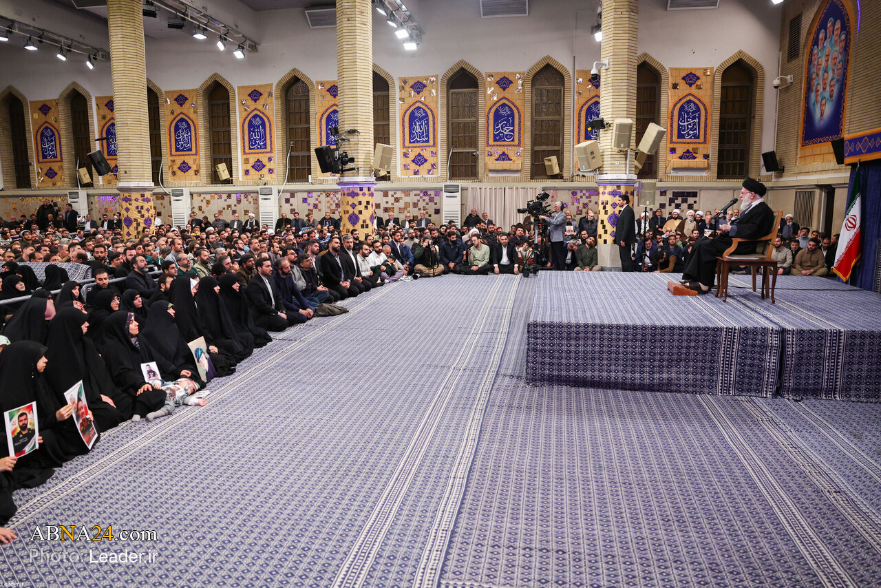 AhlulBayt News Agency: Leader of the Islamic Revolution, Ayatollah Khamenei, met with the families of Martyr Soleimani and his companions, as well as the families of other Iranian martyrs on Saturday morning, January 3, 2026. The meeting took place at the Imam Khomeini Hussainiyah, coinciding with the blessed anniversary of the birth of the Commander of the Faithful, Imam Ali (pbuh).