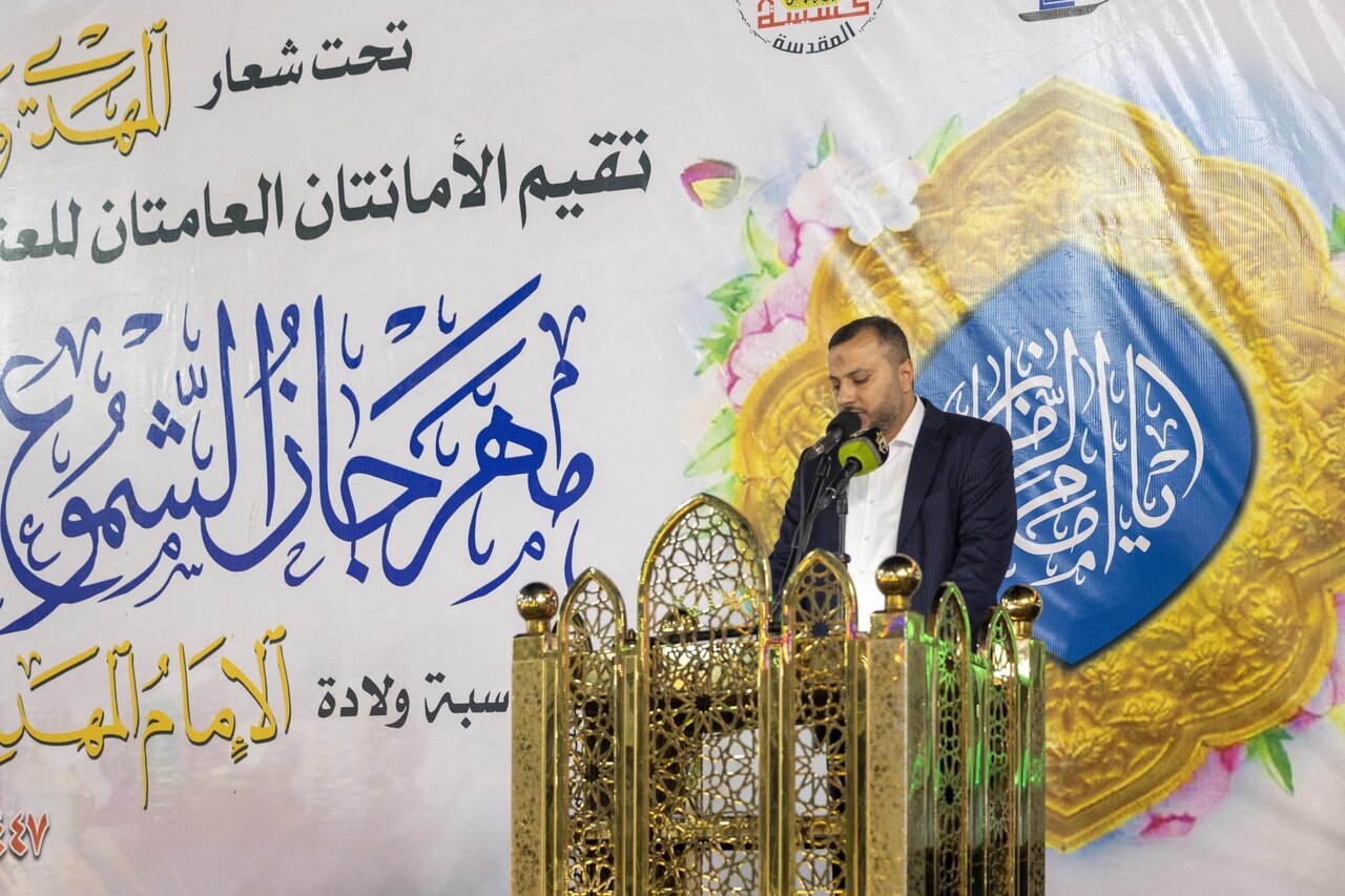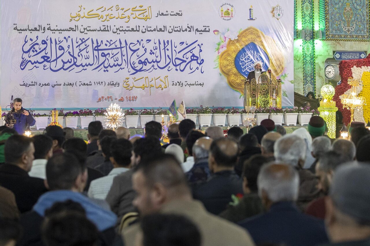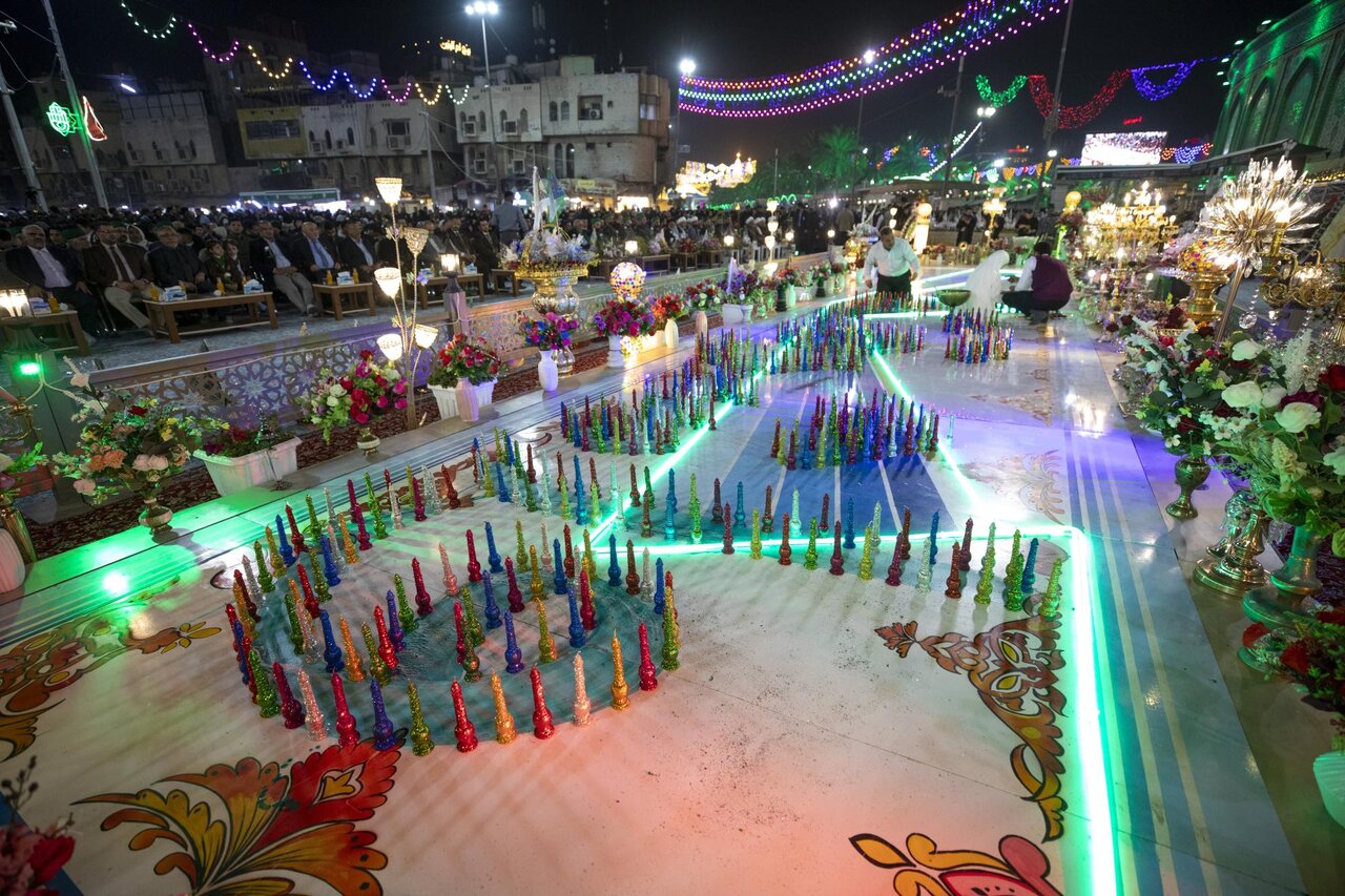 The holy shrines of Imam al-Hussayn and al-Abbas (peace be upon them) held the activities of the 26th annual Candle Festival, celebrating the birth of Imam Al-Mahdi (AJ). The festival was held at the Bab al-Qibla of the shrine of Aba al-Fadl al-Abbas (PBUH) under the slogan: "The Mahdi is a unbroken Promise," with the presence of the officials of the two holy shrines, religious and official figures, and a large crowd of visitors. The festival included the lighting of (1192) candles, corresponding to the years of the Imam Al-Mahdi's age, arranged artistically to form the phrase "And the earth shone with his light."