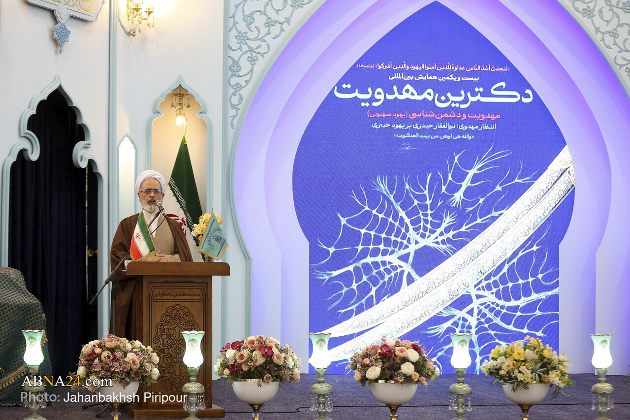 AhlulBayt News Agency: The 21st International Conference on the Mahdism Doctrine, held under the theme ‘Mahdism and Enemy Recognition (Zionist Judaism)’ and the slogan ‘Mahdavi Expectation: The Sword of Haidar Against the Khaybari Jews,’ convened on Monday morning (February 2, 2026) at the Baqi‘ Shabestan of Jamkaran Mosque.