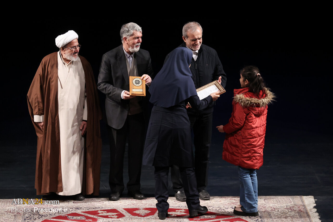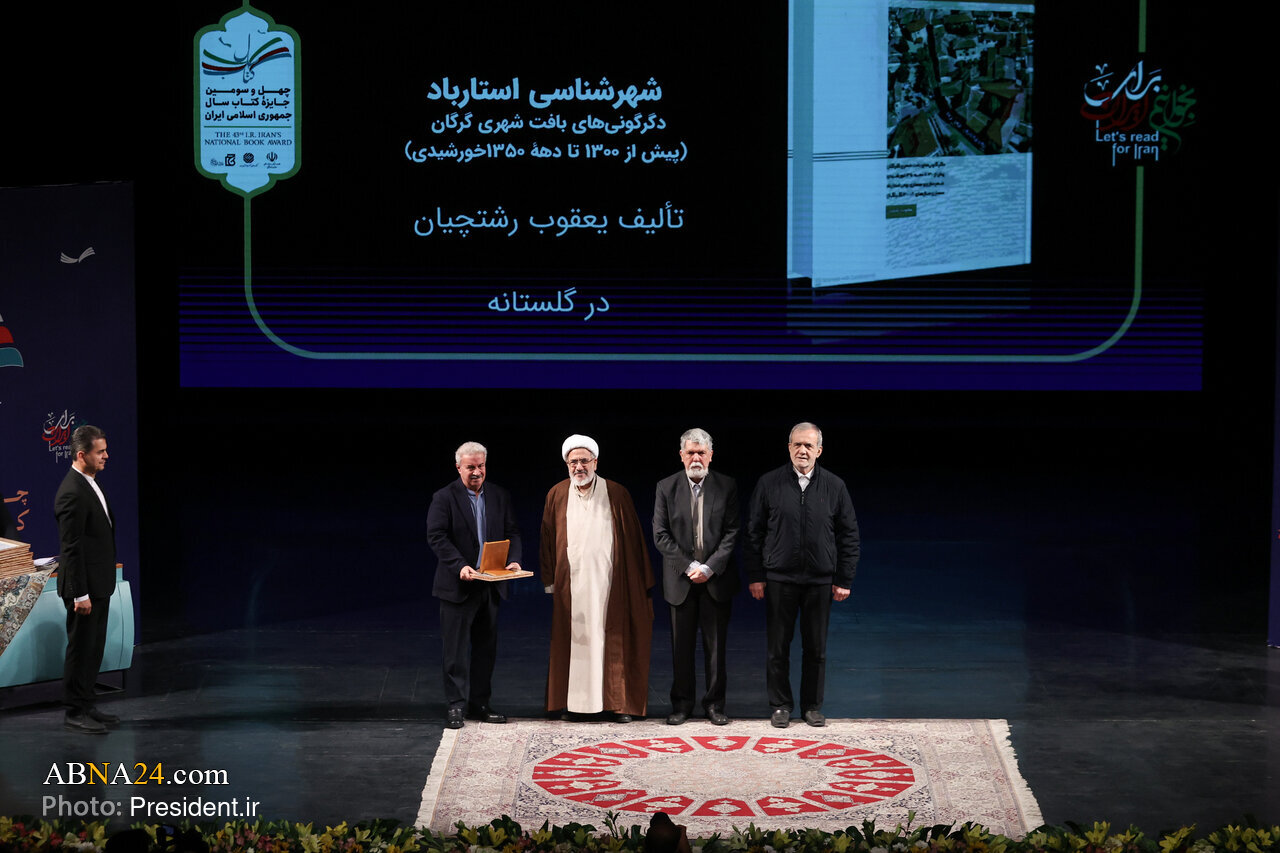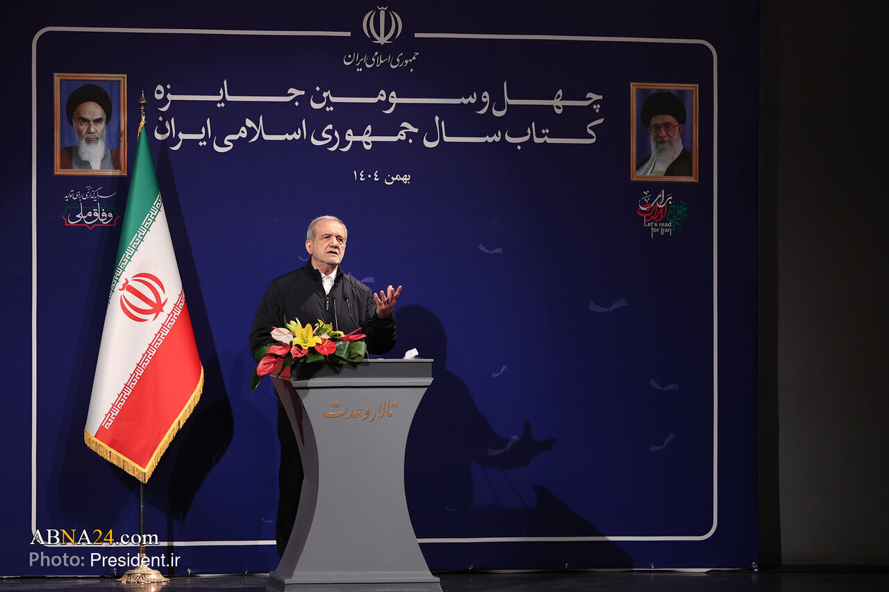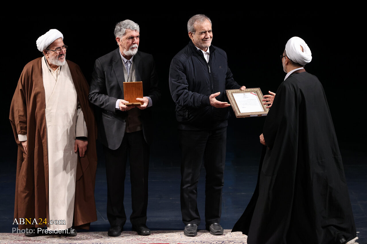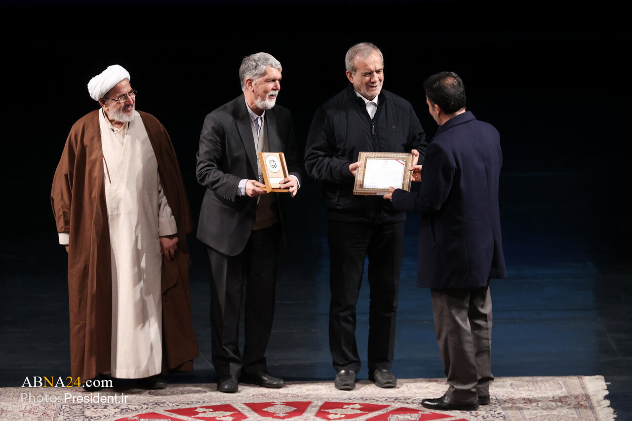 AhlulBayt News Agency: The closing ceremony of the 43rd Book of the Year Award of the Islamic Republic of Iran was held on Sunday morning (February 8, 2026) at Vahdat Hall, with the participation of President Masoud Pezeshkian, along with writers, scholars, and members of the cultural and academic community.