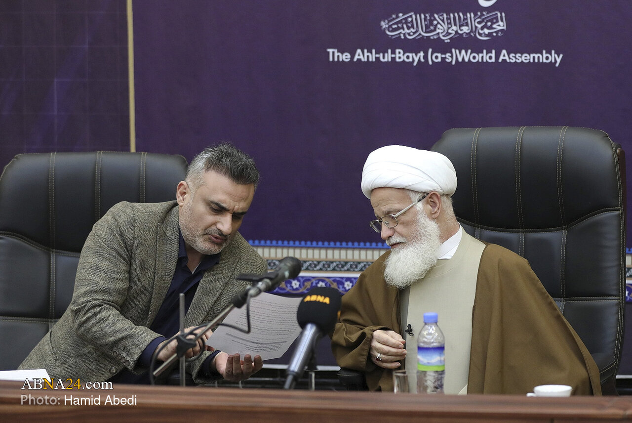 AhlulBayt News Agency: The Scientific session titled “Intertextual Studies in the Analysis of the History and Biography of the AhlulBayt (a.s.)” was held on Monday (February 16, 2026), organized by the Office of Studies, Research, and Academic Affairs of the AhlulBayt (a.s.) World Assembly, in cooperation with Al‑Mustafa International University and ABNA News Agency. The session took place in the conference hall of the AhlulBayt (a.s.) World Assembly with the presence of Ayatollah Mohammad‑Hadi Yousofi Gharavi and Dr. Safari Foroushani.