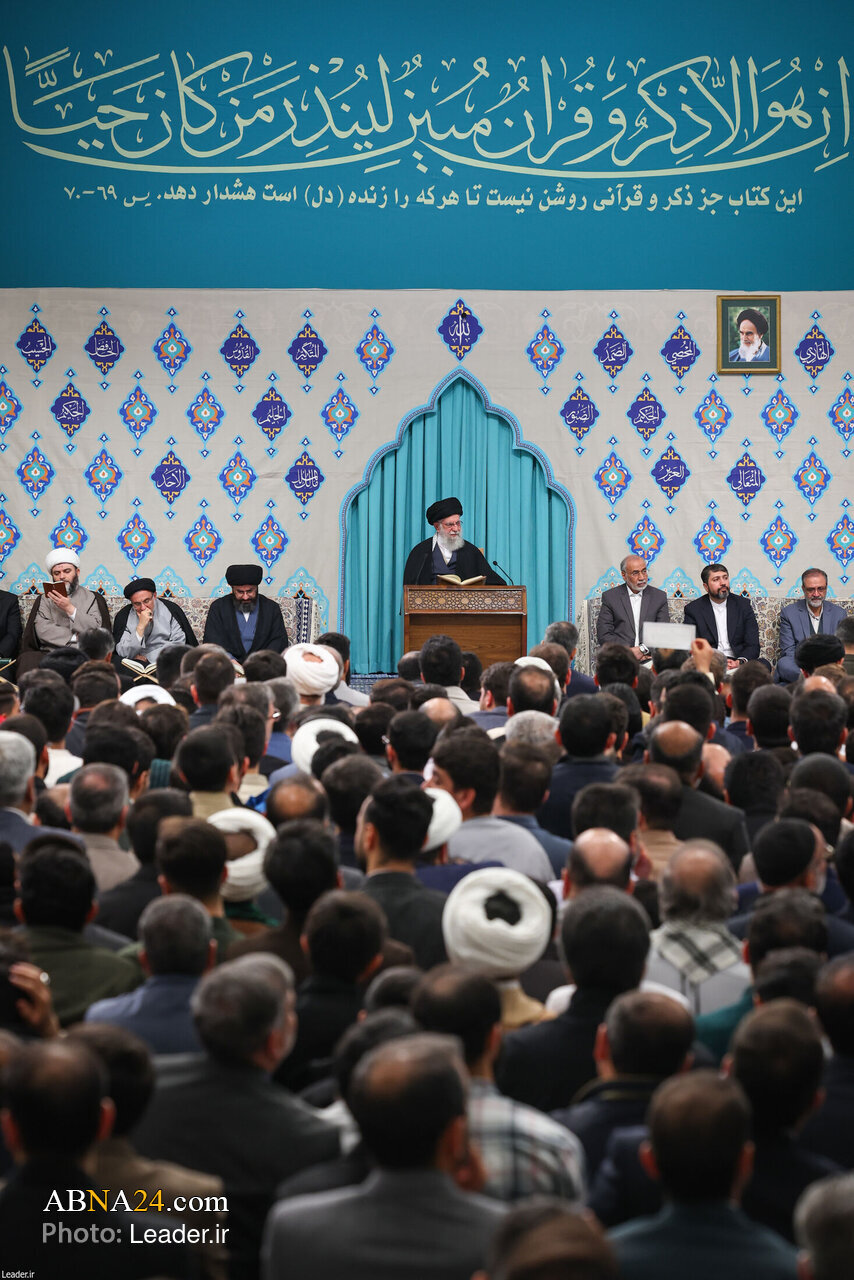 AhlulBayt News Agency: The Quranic gathering was held in the presence of Imam Khamenei, the Leader of the Islamic Revolution and a group of distinguished Quran reciters, on Feb. 19, 2026 at the Imam Khomeini (ra) Hussainiyah.