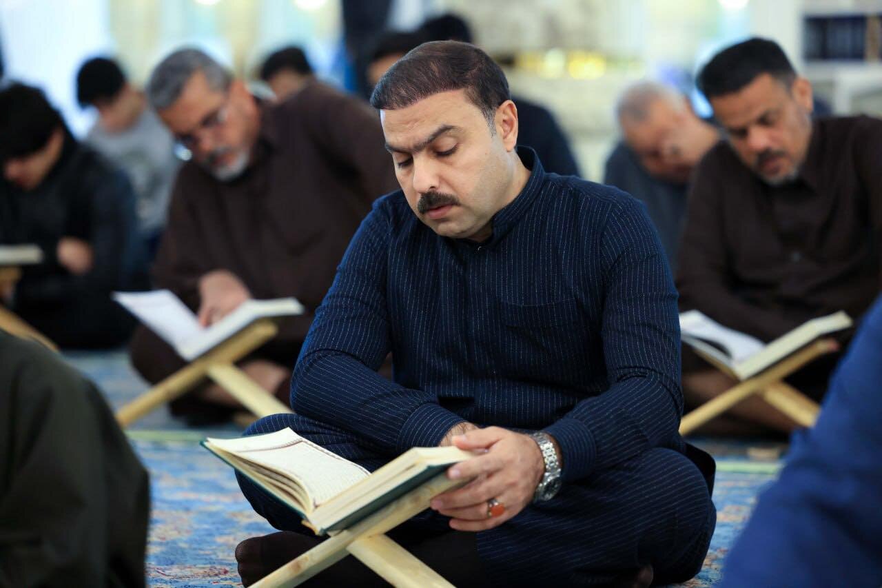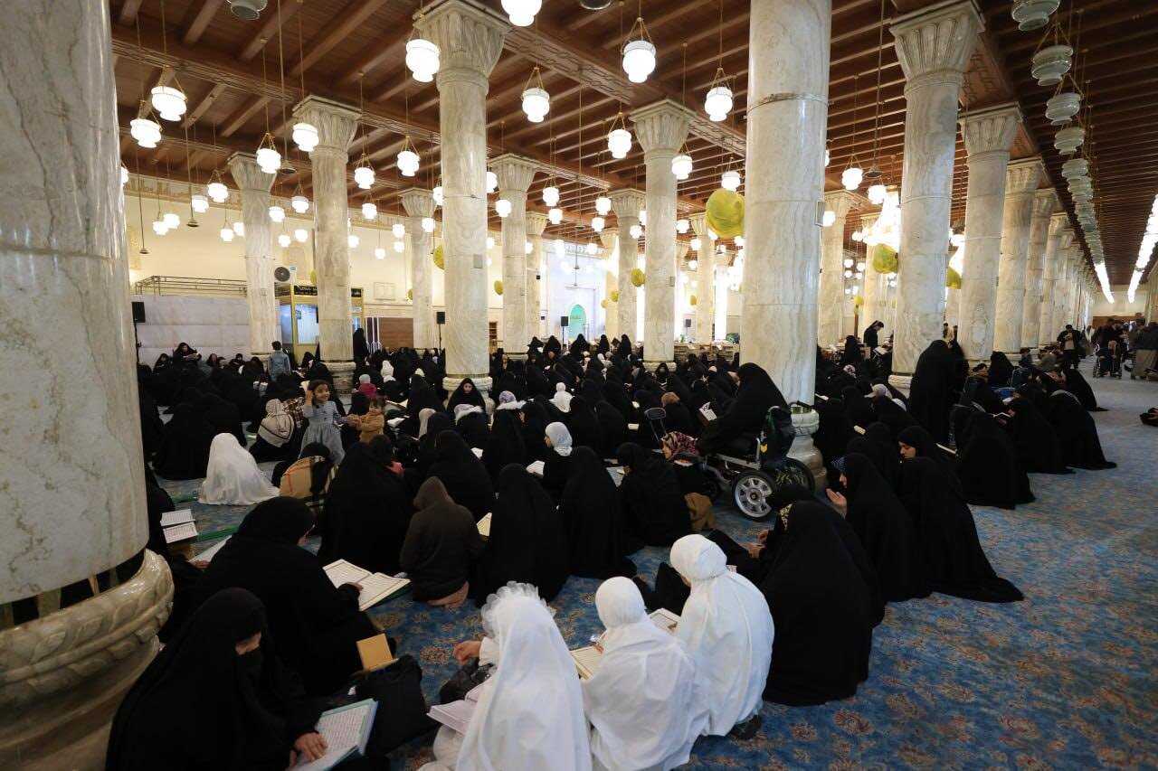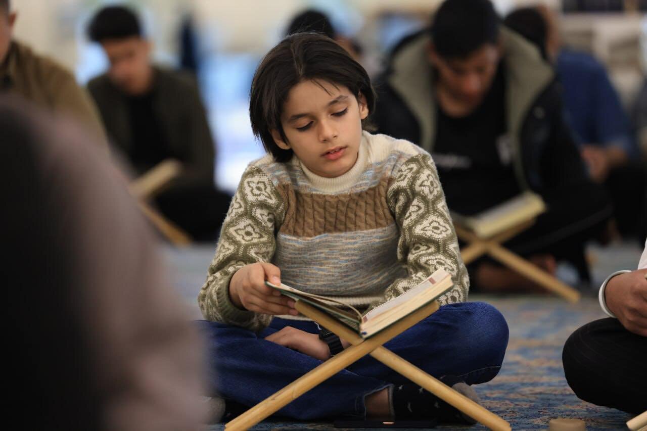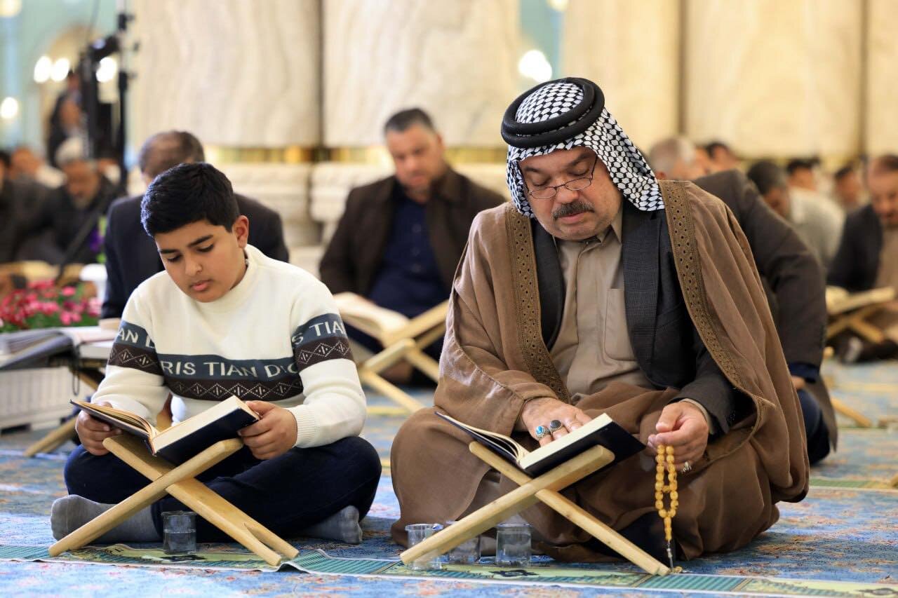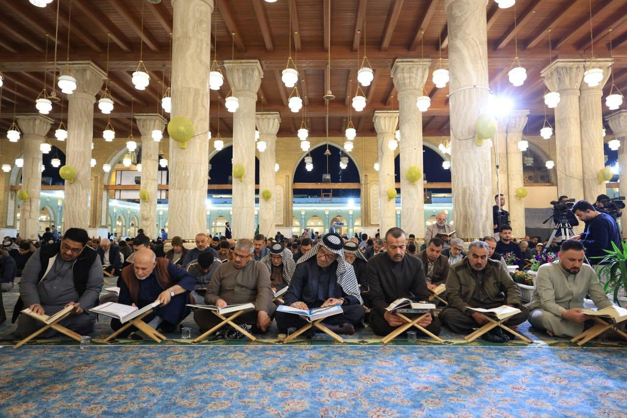 At the Grand Mosque of Kufa, worshippers gather in a serene spiritual atmosphere where Qur’anic recitation fills the space with light. The verses elevate hearts and deepen the connection of believers to the Holy Qur’an.