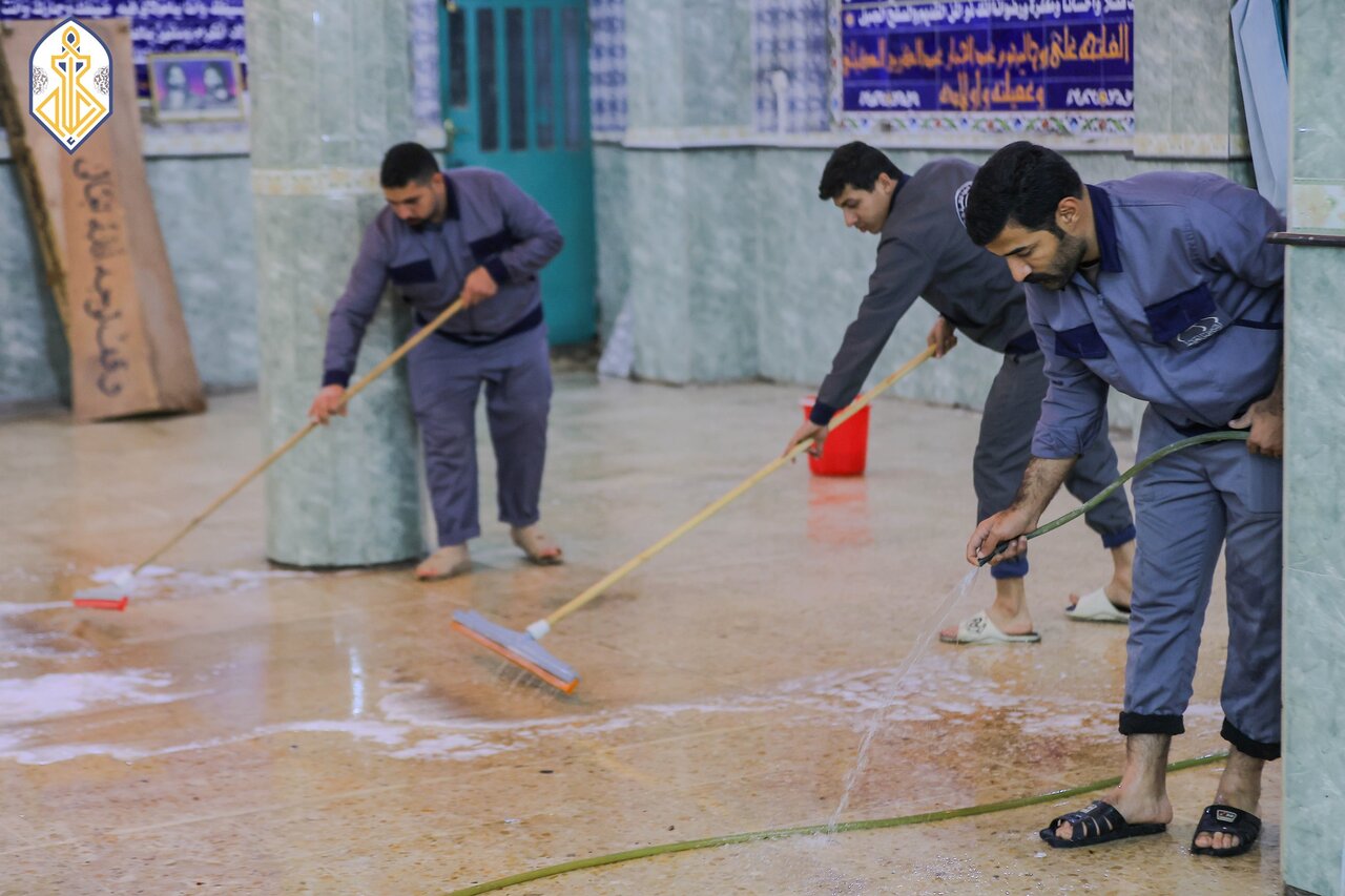 The Holy Kadhimiya Shrine’s service teams are actively continuing their campaign to clean, maintain, and organize mosques and hussainiyas across Kadhimiya. The initiative is part of the broader “Mosques and Hussainiyas Week,” aimed at improving religious spaces and supporting worshippers.