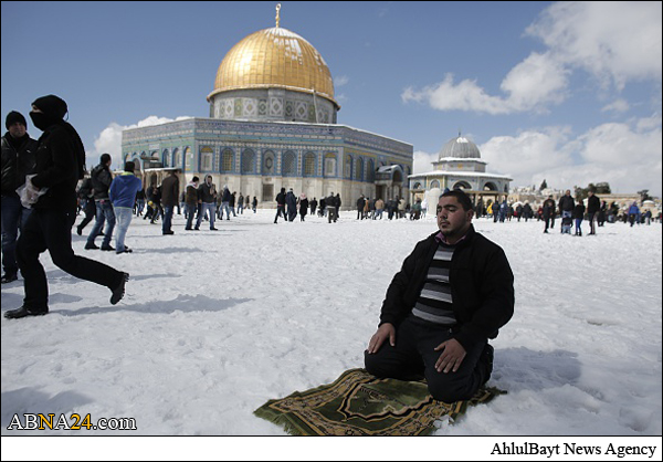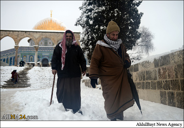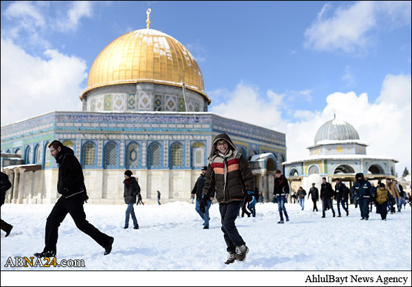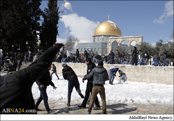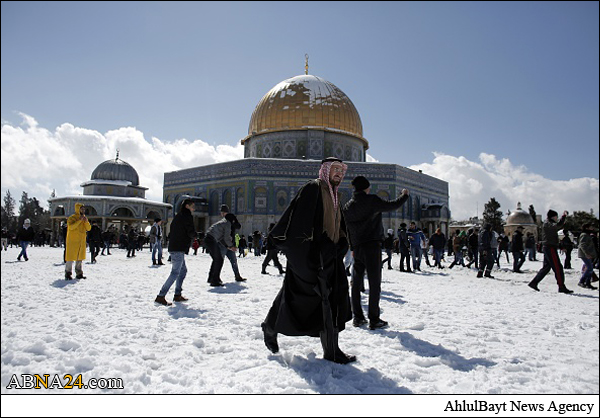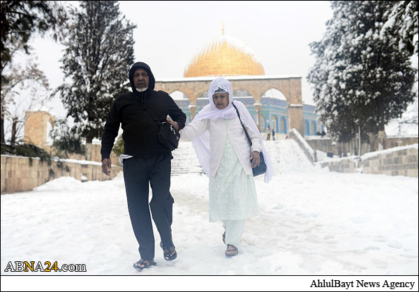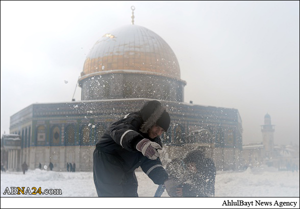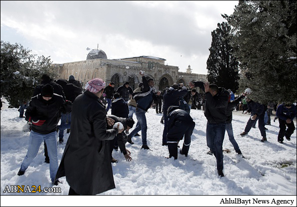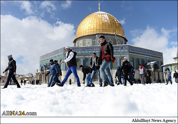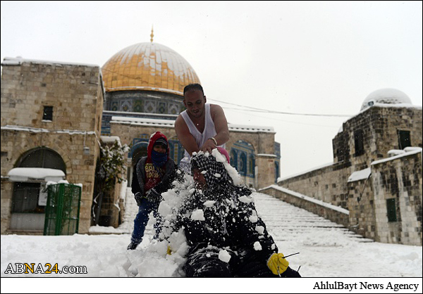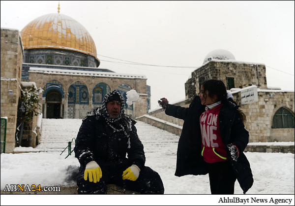 Shops and offices in cities across the West Bank were closed Friday after a major winter storm pummeled the region and left nearly half a meter of snow in some places. Muslim gathered in Al-Aqsa Mosque praying and playing with snow.